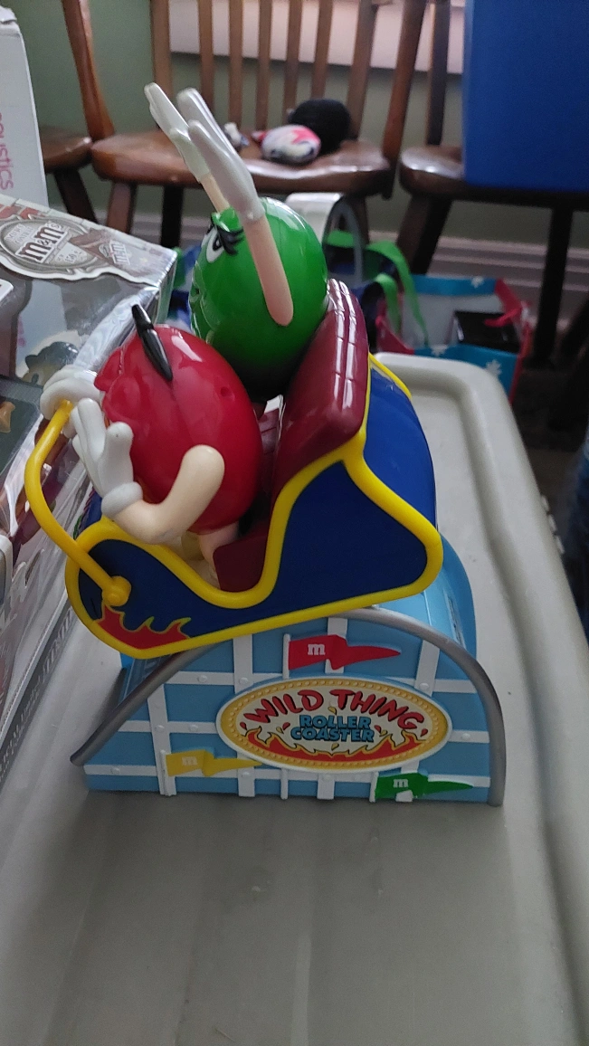 Vintage M&M's Wild Thing Roller Coaster collectible. Features red and green M&M's characters. Comes in original box. Part of a limited edition collection.