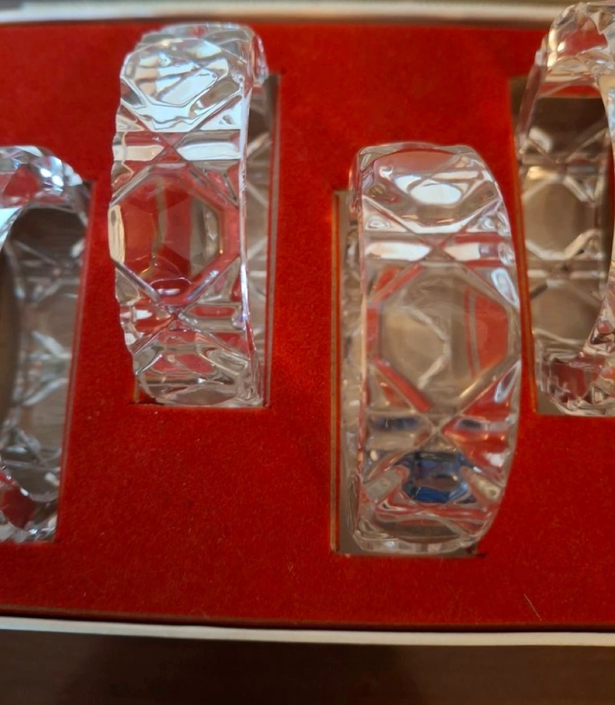 4 vintage round crystal napkin rings. Made in western Germany. In box, never been used. 2.25” wide. Available for pickup in Markland Wood.