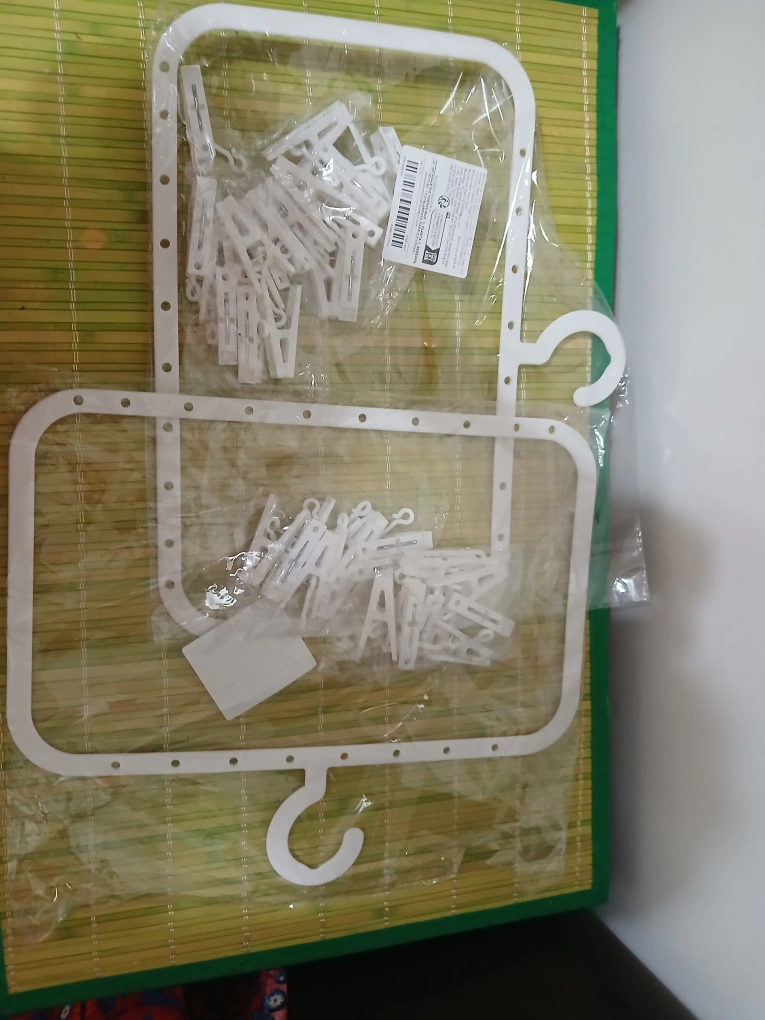 Two plastic drying racks. Each rack includes multiple small plastic clips. Great for drying clothes or small items.