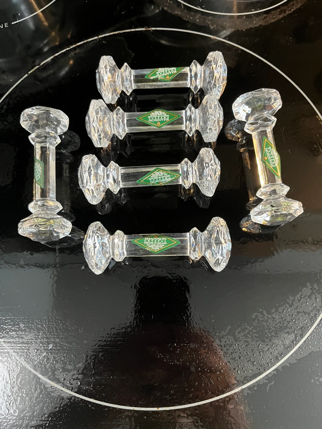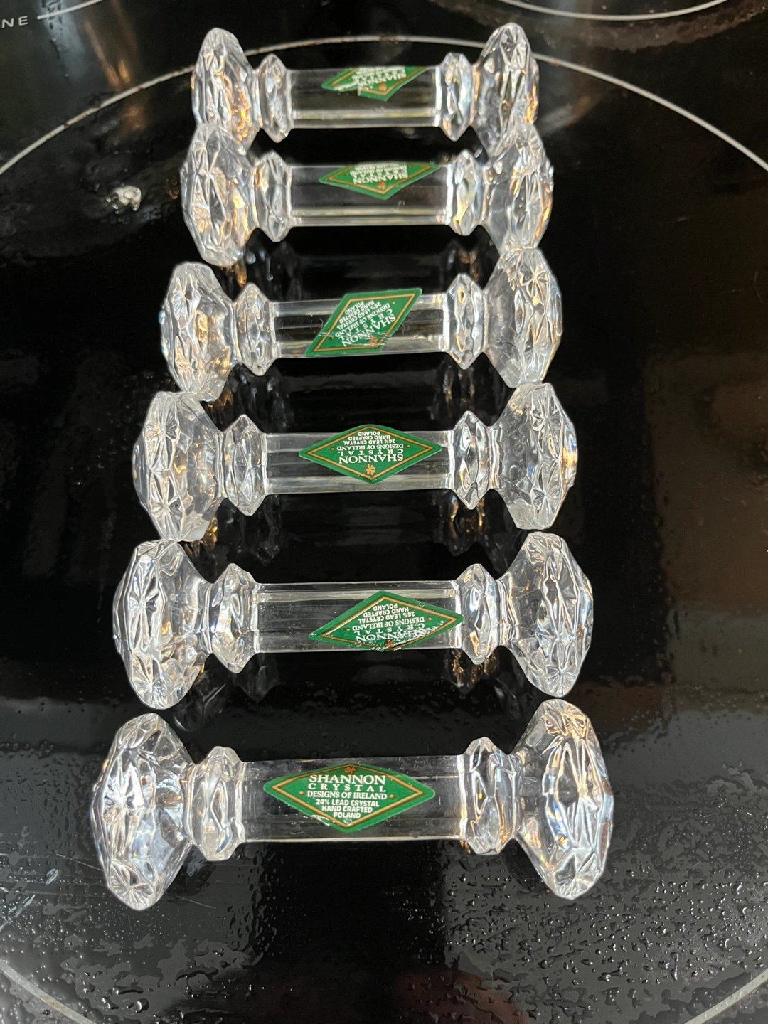 6 Luxury Shannon Crystal knife holders Faceted design. Elegant addition to your table setting. New.
