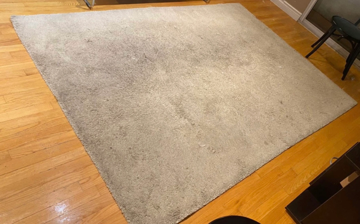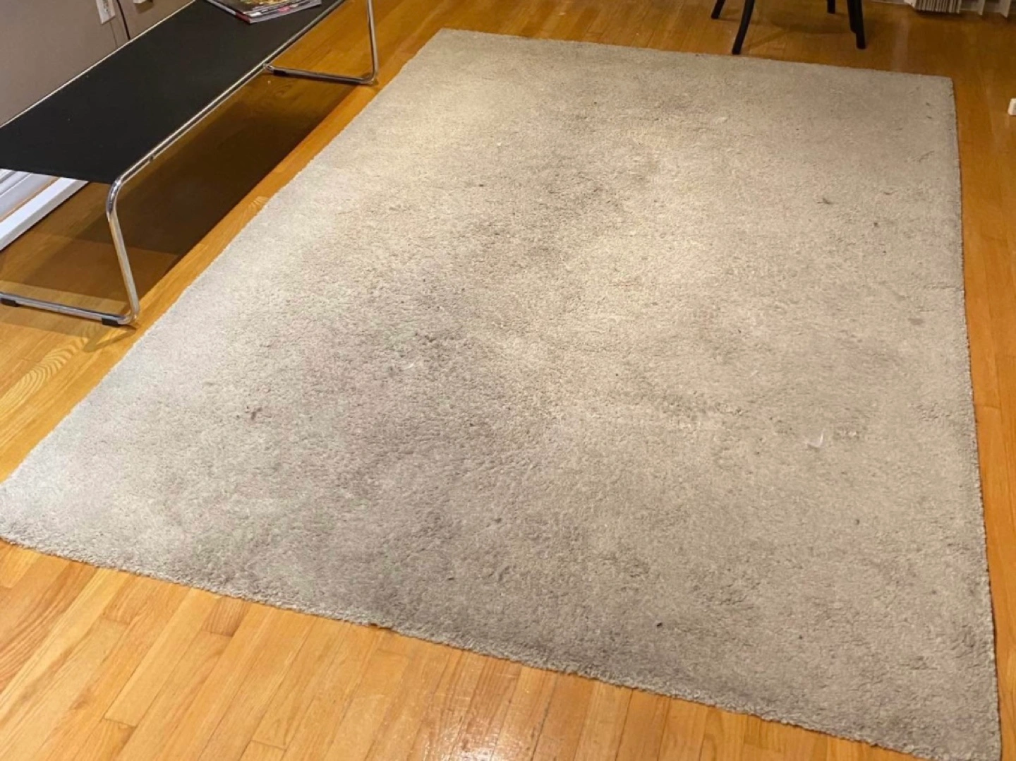 Soft, light grey rug. Good condition, some minor wear. Perfect for living room or bedroom. Large size, ideal for under furniture.