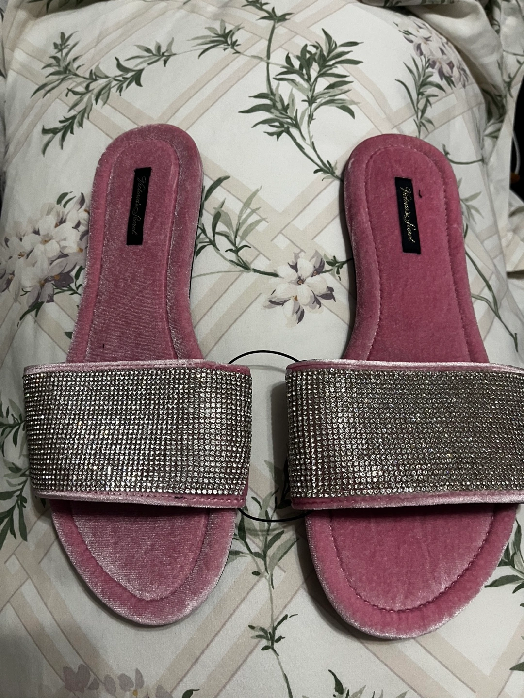 BNWT Victoria Secret Pink Velvet Slides with Rhinestone Detail