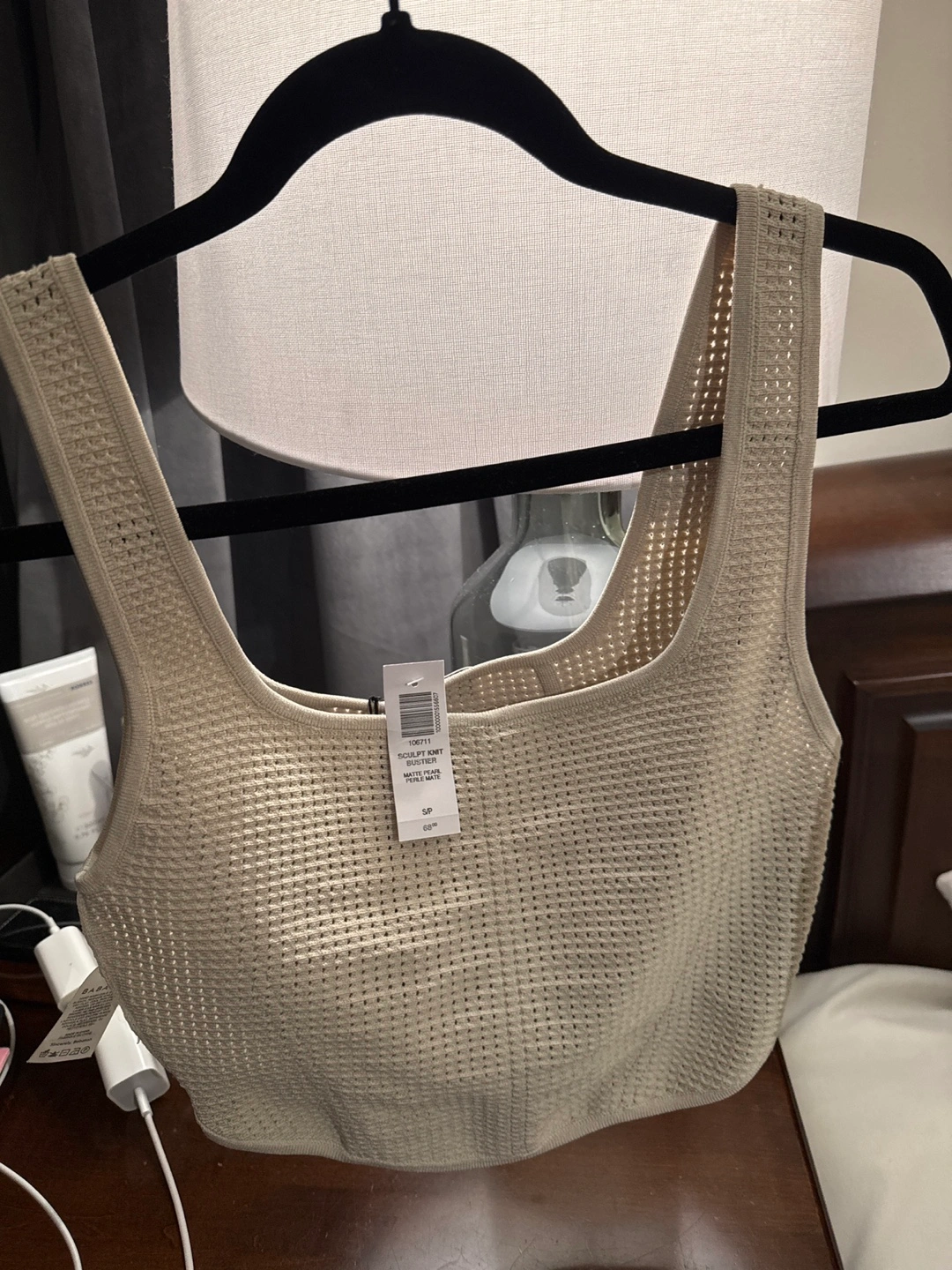 27Beige knit tank top. Scoop neck. Open knit pattern. Size small. New with tags.