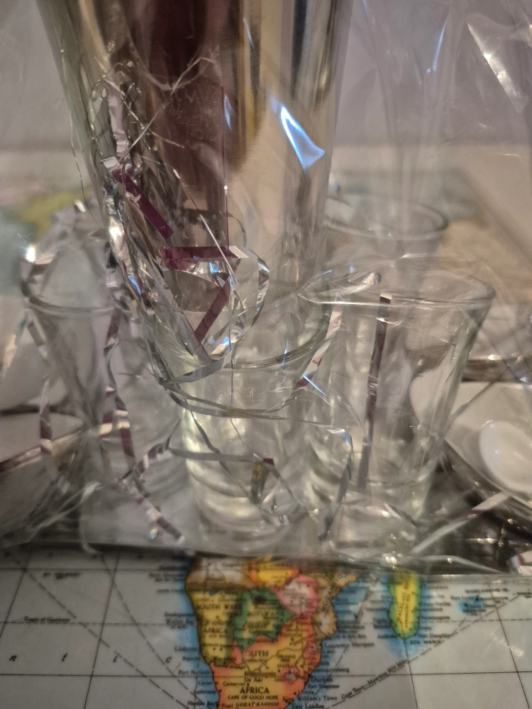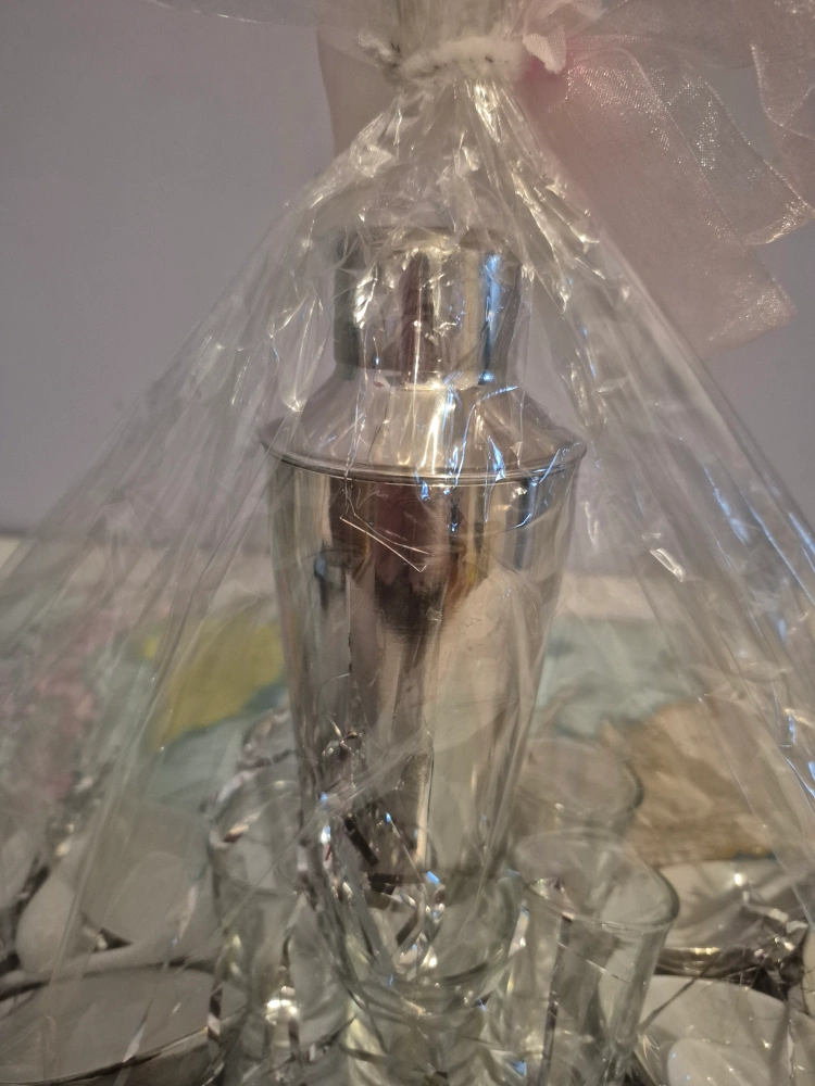 Cocktail shaker and 5 shot glasses set. Perfect for entertaining. New, never used. stainless steel.
