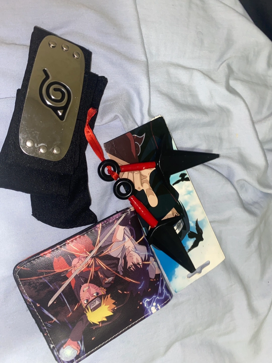 I can sell them separate if wanted,Naruto and Sasuke wallet. Leaf Protector headband. Two kunai. Great for cosplay or collection.