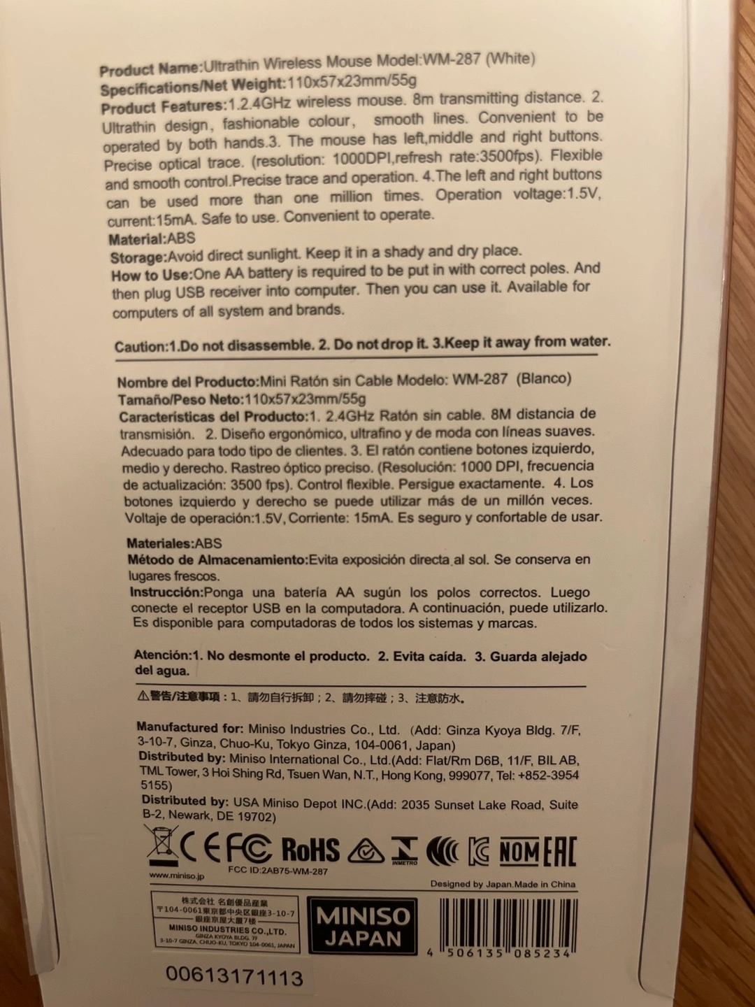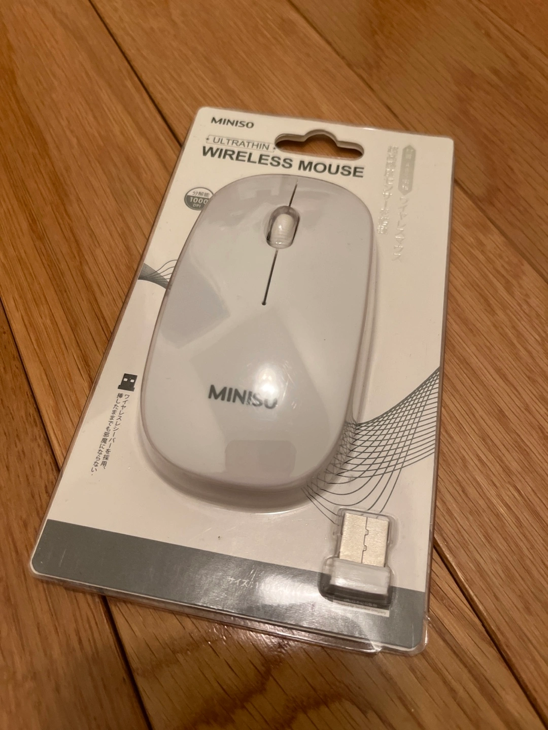 Brand new MINISO ultrathin wireless mouse. White colour. 2.4GHz wireless, smooth lines. Convenient to use. Precise optical control. 1000 DPI. Left and right buttons. USB receiver included. Lightweight and portable.
