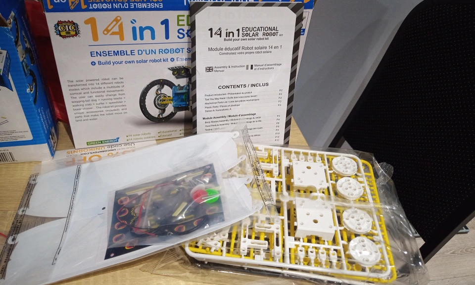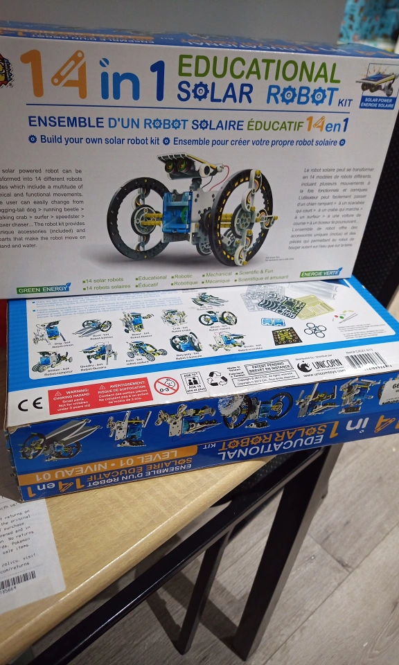 14-in-1 educational solar robot kit. Build 14 different robot models. Includes all parts and instructions.