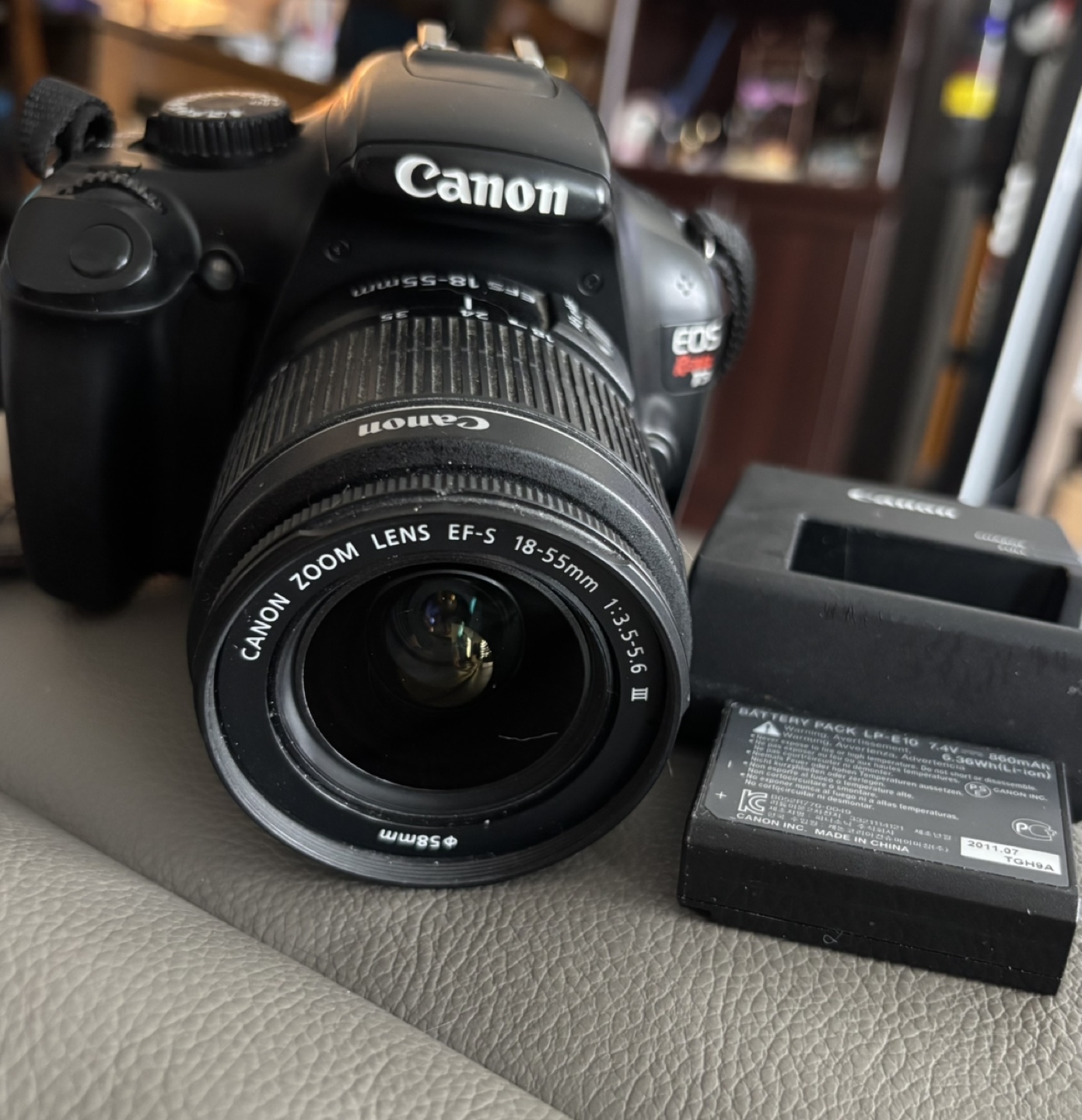 1 / 41 / 4Buy & SellCanon EOS Rebel T3 DSLR Camera with 18-55mm Lens & ChargerCanon EOS Rebel T3 DSLR Camera with 18-55mm Lens & Charger$125Canon EOS Rebel T3 DSLR camera. Includes battery charger. Good condition.BrandCanonWHERE TO MEETCheck LocationView MapSELLERverifiedMaryPaisley1527 reviews1 chats·0 favorites·26 viewsSEND CHAT TO SELLERHi Mary! I’m interested in your listing.Hi Mary! I’m interested in your listing.Get the Karrot app to chatSign In to chat