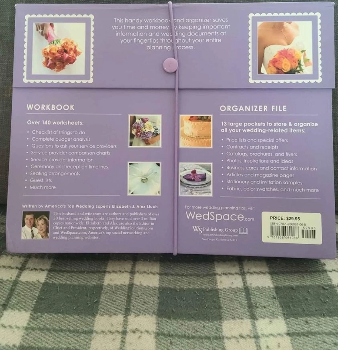Wedding planning workbook and organizer. Includes over 140 worksheets and 13 pockets to store important documents. Helps track budget, timelines, vendors, and more. Great for keeping organized throughout wedding planning.