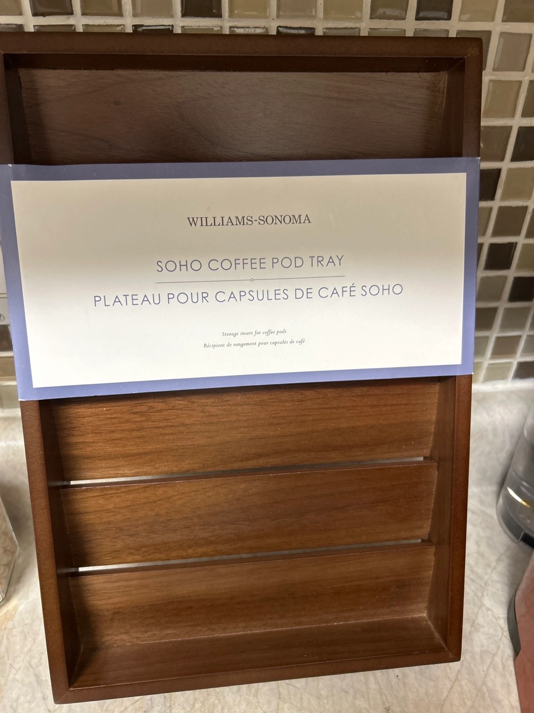 Wooden coffee pod tray. Holds coffee pods. Neat storage solution. Good condition.