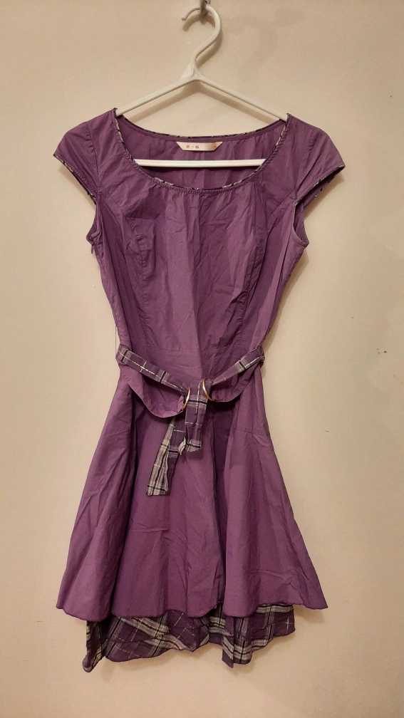 Purple and Plaid Dress with belt