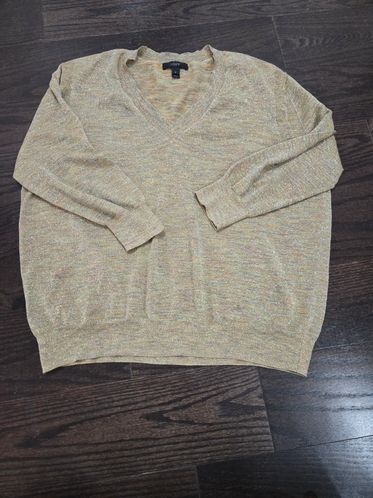 709Lightweight V-neck sweater. Metallic gold and beige colour. Long sleeves. Excellent condition.