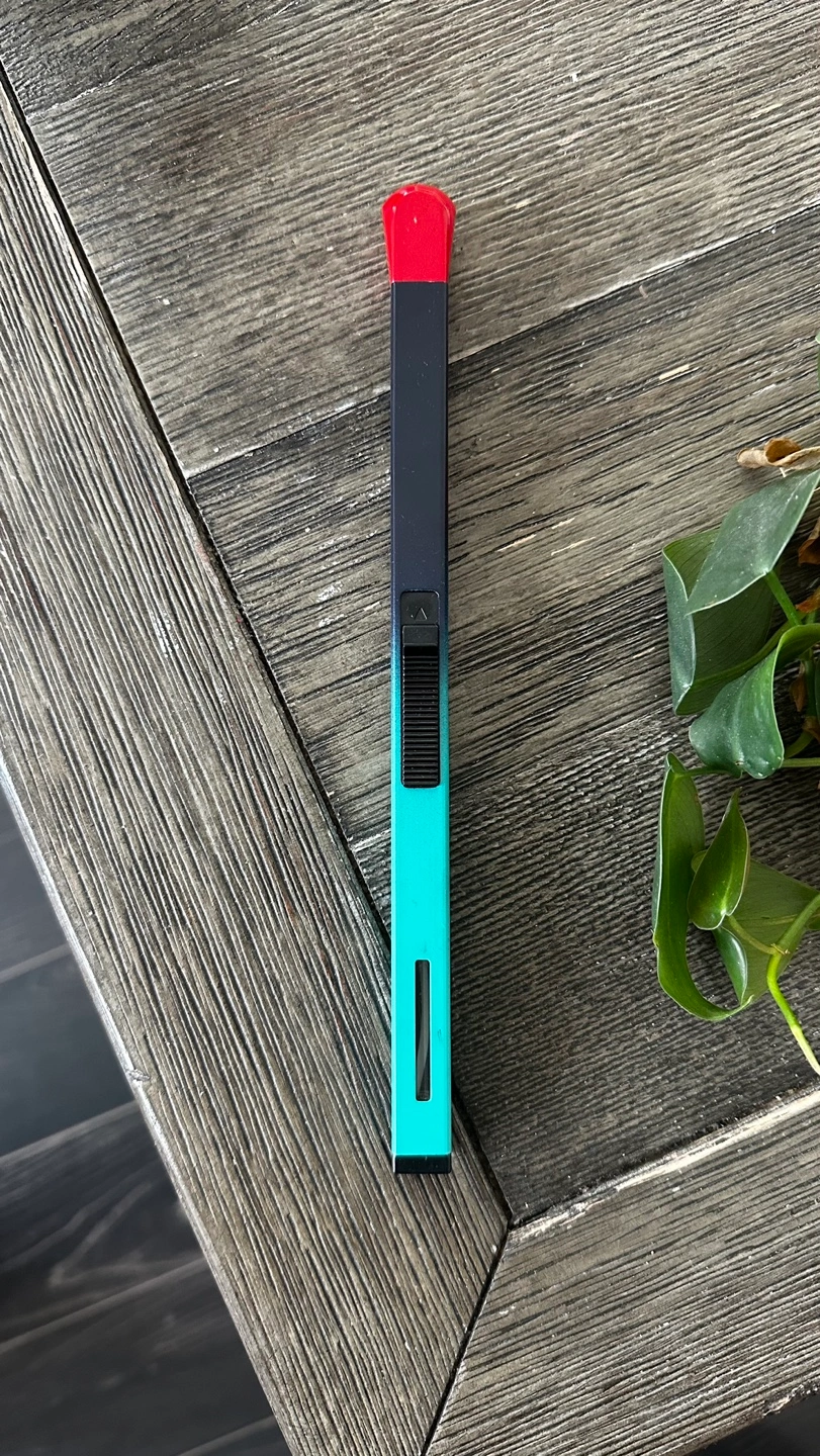 Cute BBQ lighter that looks like a match. Features a teal and black ombre design. Red top. Slides up to ignite