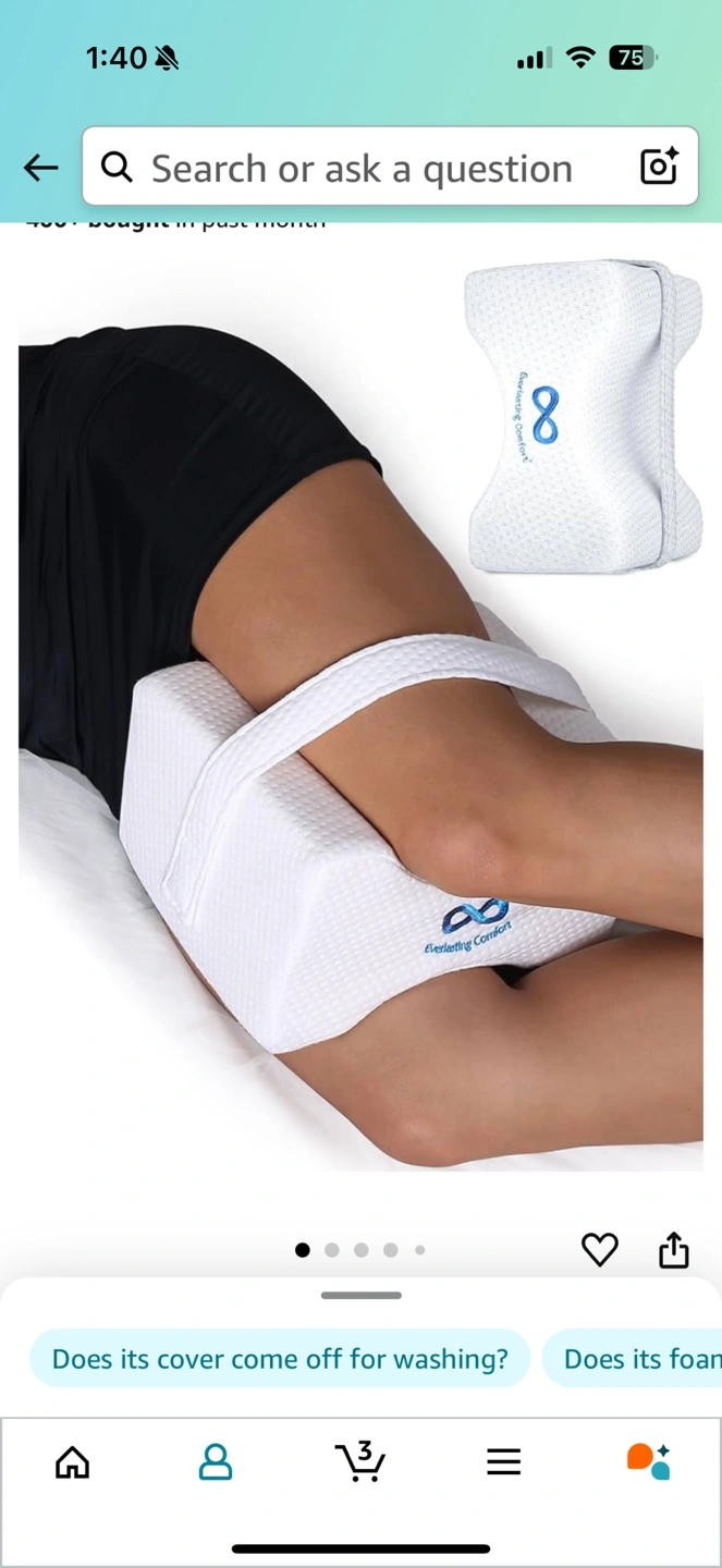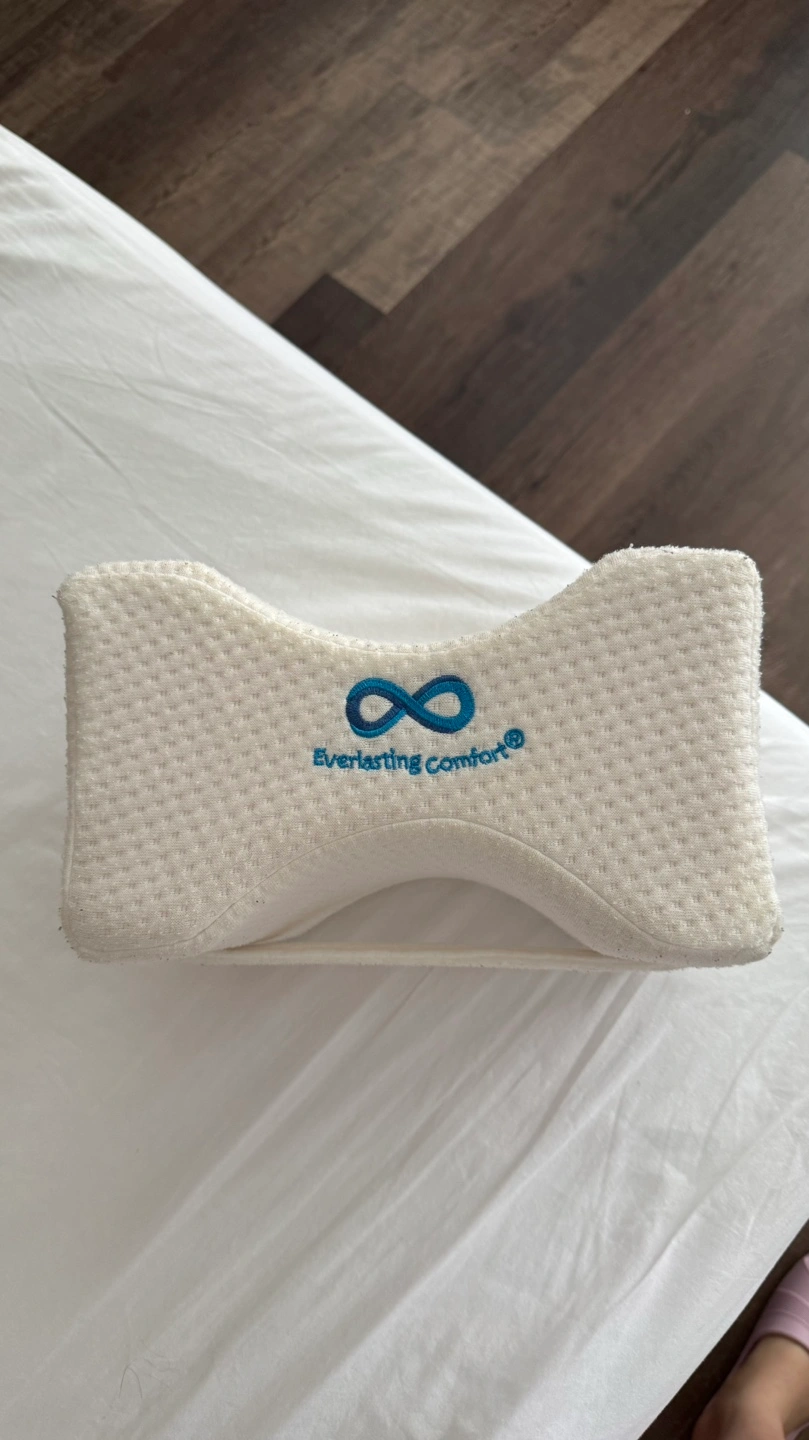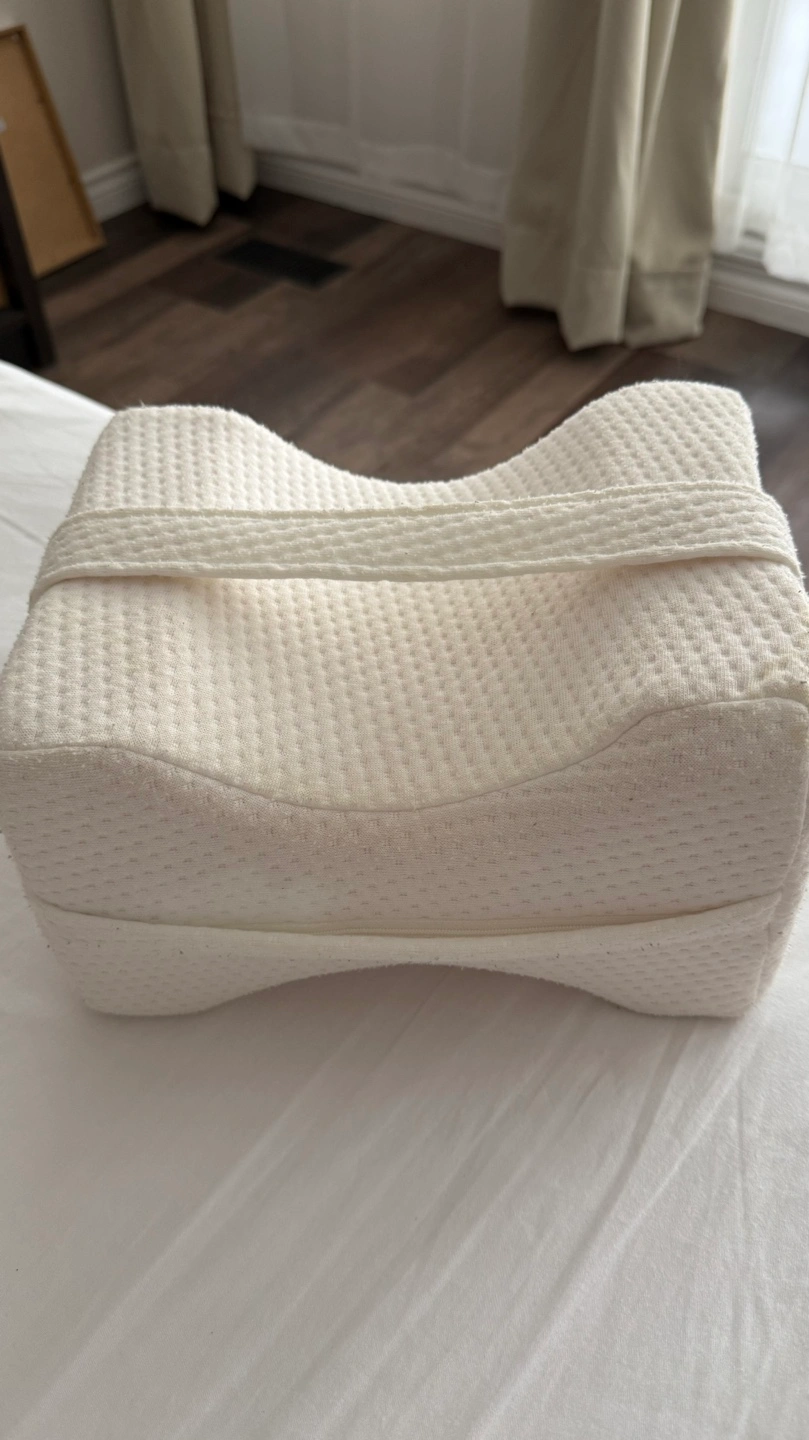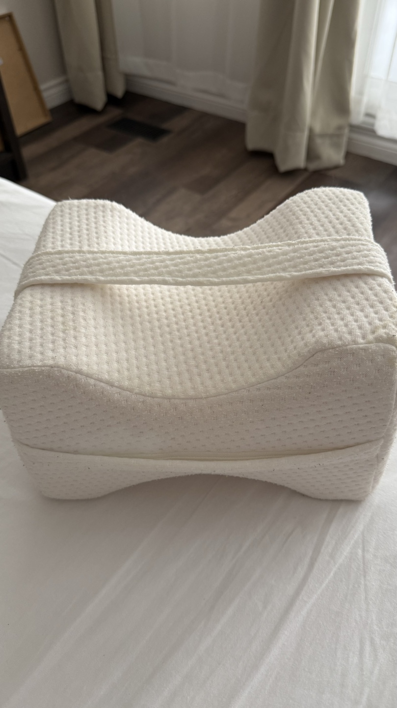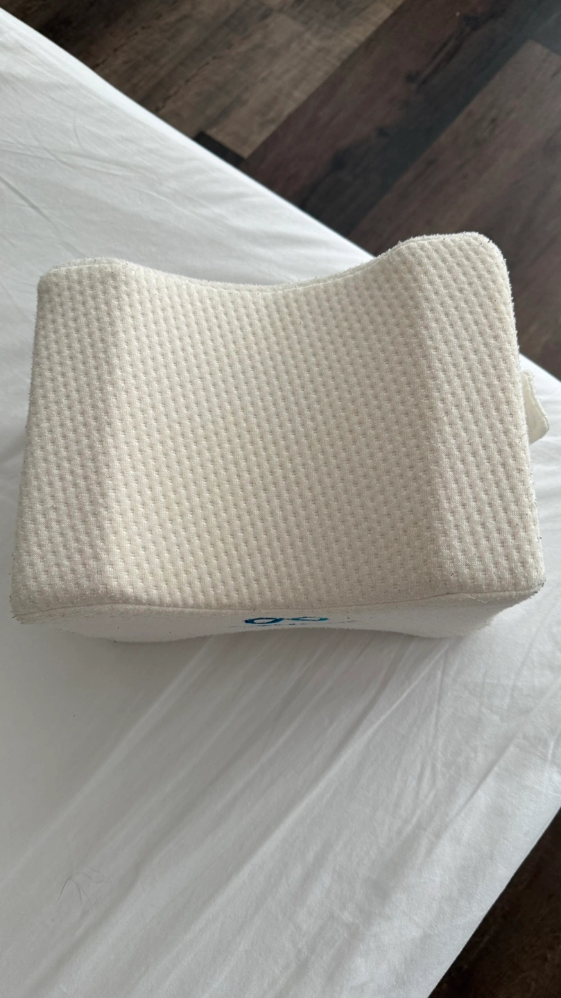 I’ve only used this knee pillow a few times, so it’s in great shape! It’s washable and pretty clean, though there are just a few little pills on the surface. Overall, it looks almost new!