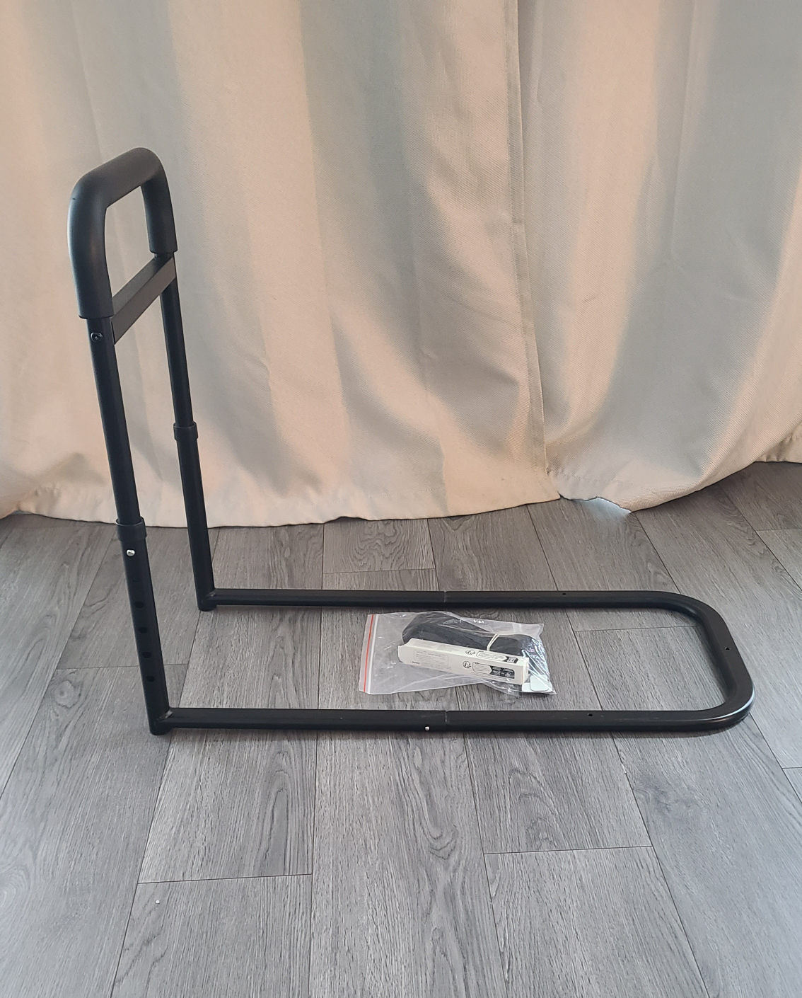 Black metal bed rail. Adjustable height. Includes hardware. For elderly adults’ safety. Like new. Pick up 375 King St. W