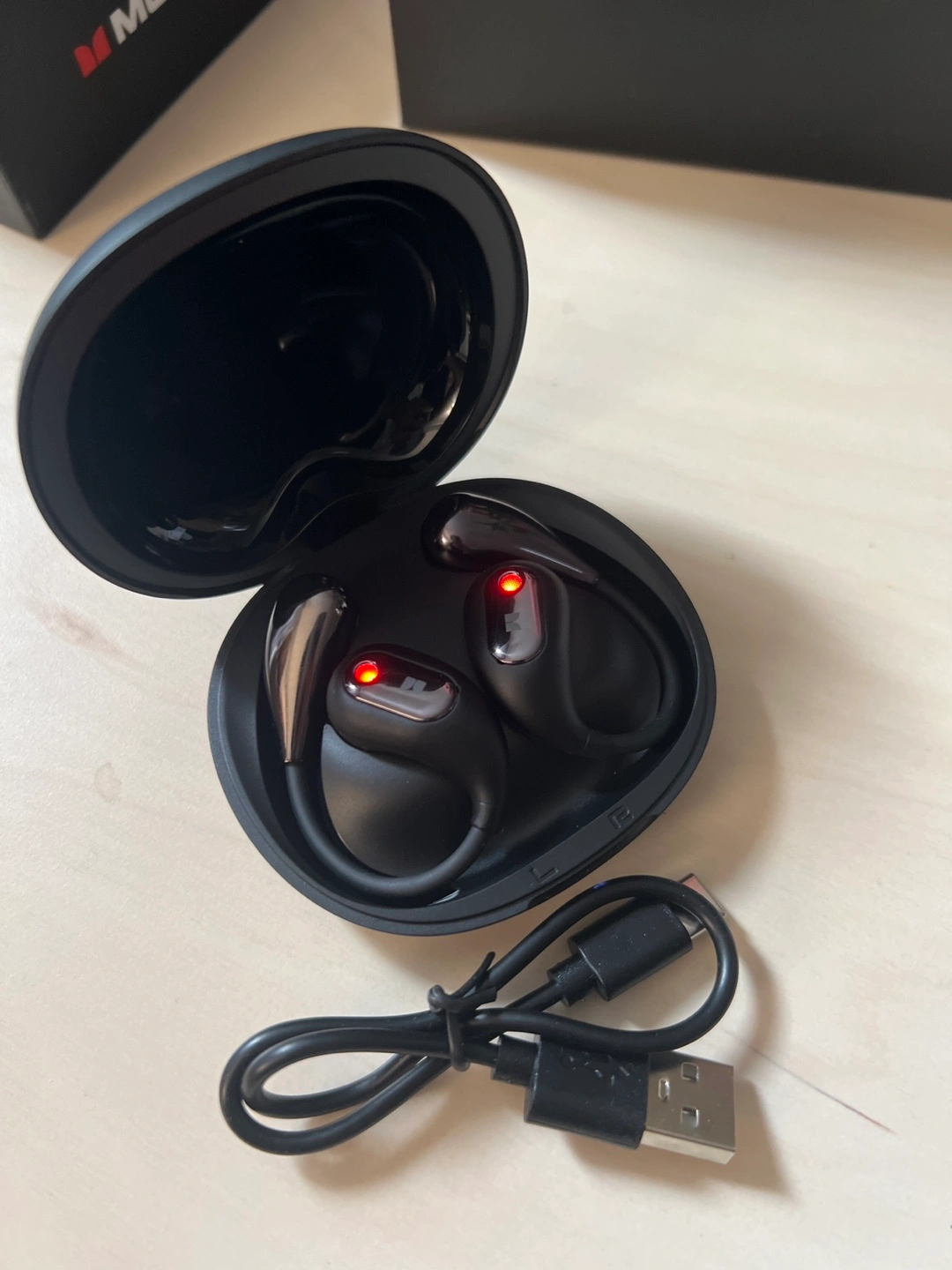 Brand new, unopened box. Air conduction Bluetooth headphones. Includes charging case and USB charging cable. Open ear design. IPX5 water resistant. Like New. Never Used