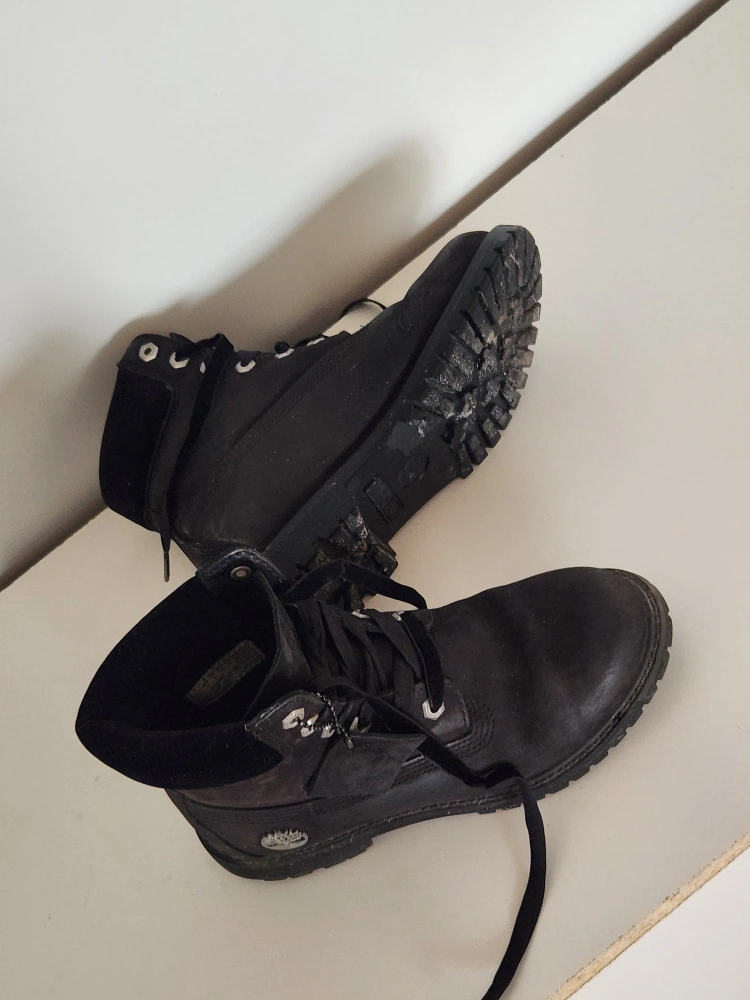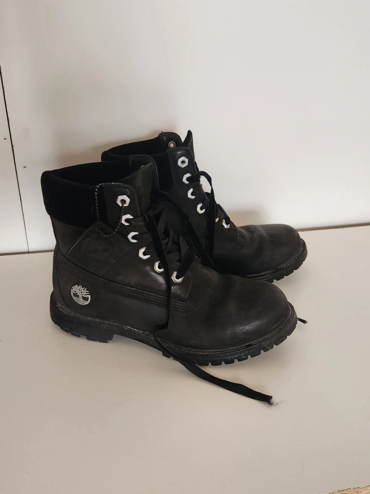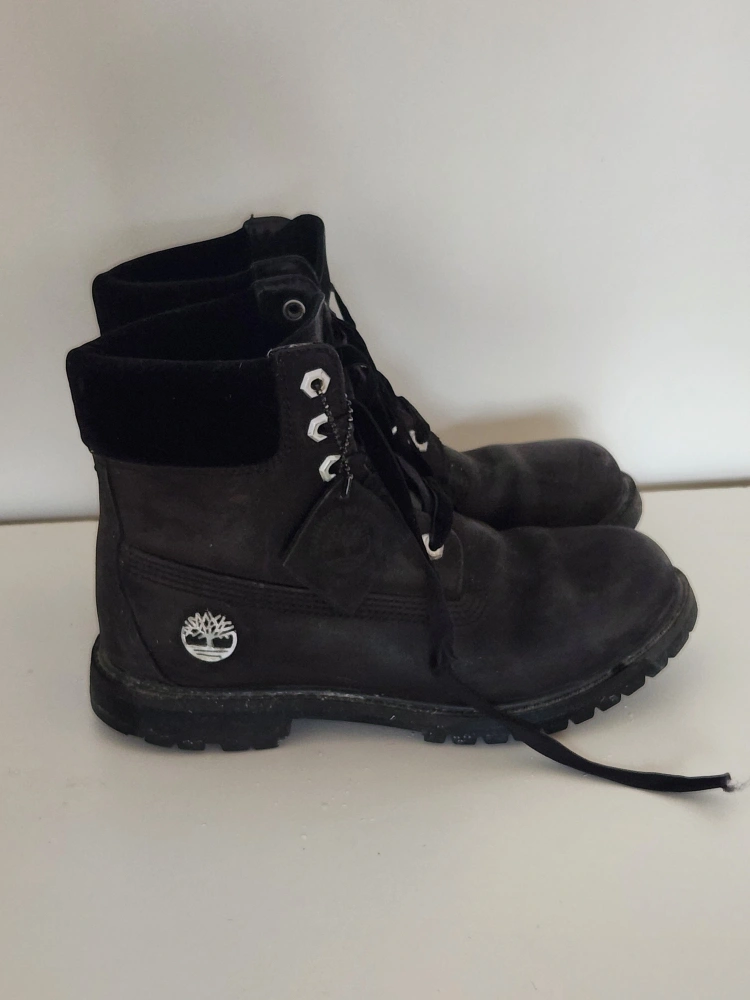 Beautiful black leather Timberland boots with premium velvet accents in size women's US 7.