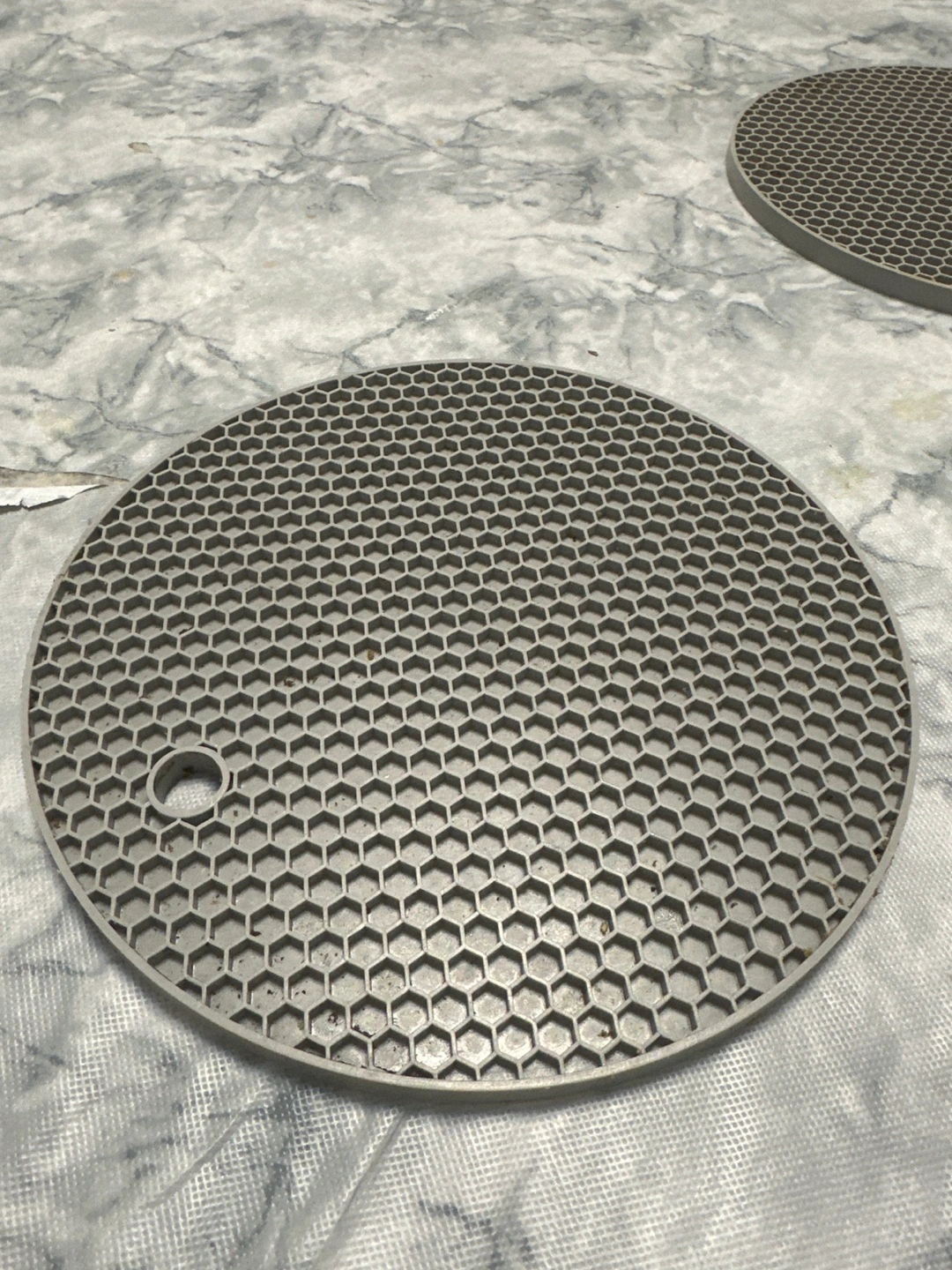 20Round metal grill grate. Hexagon pattern. Small hole near center. Used condition.