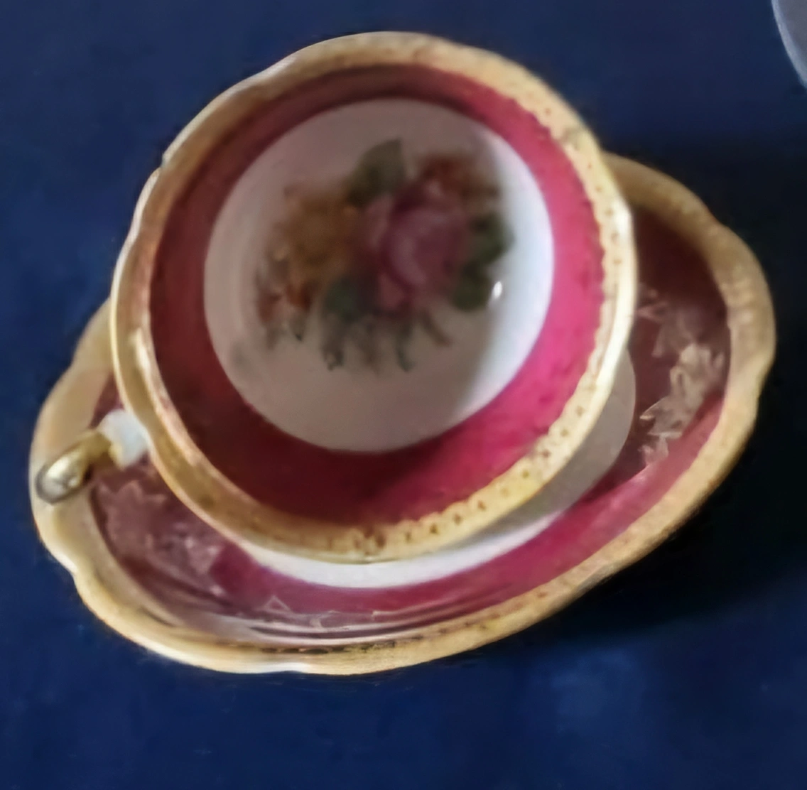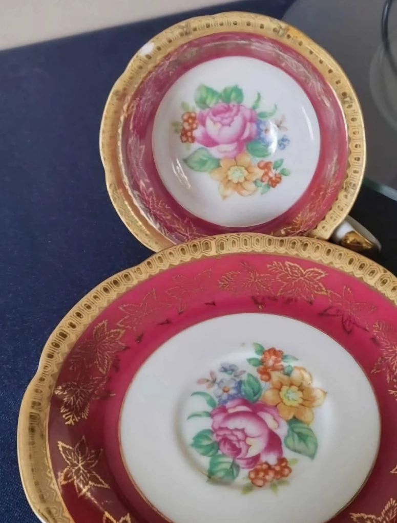 Eye-catching Red & Gold detailing with a Floral center makes this rare find set a beautiful find to add to your Vintage Teacup Collection even with the signs of wear as shown in pictures