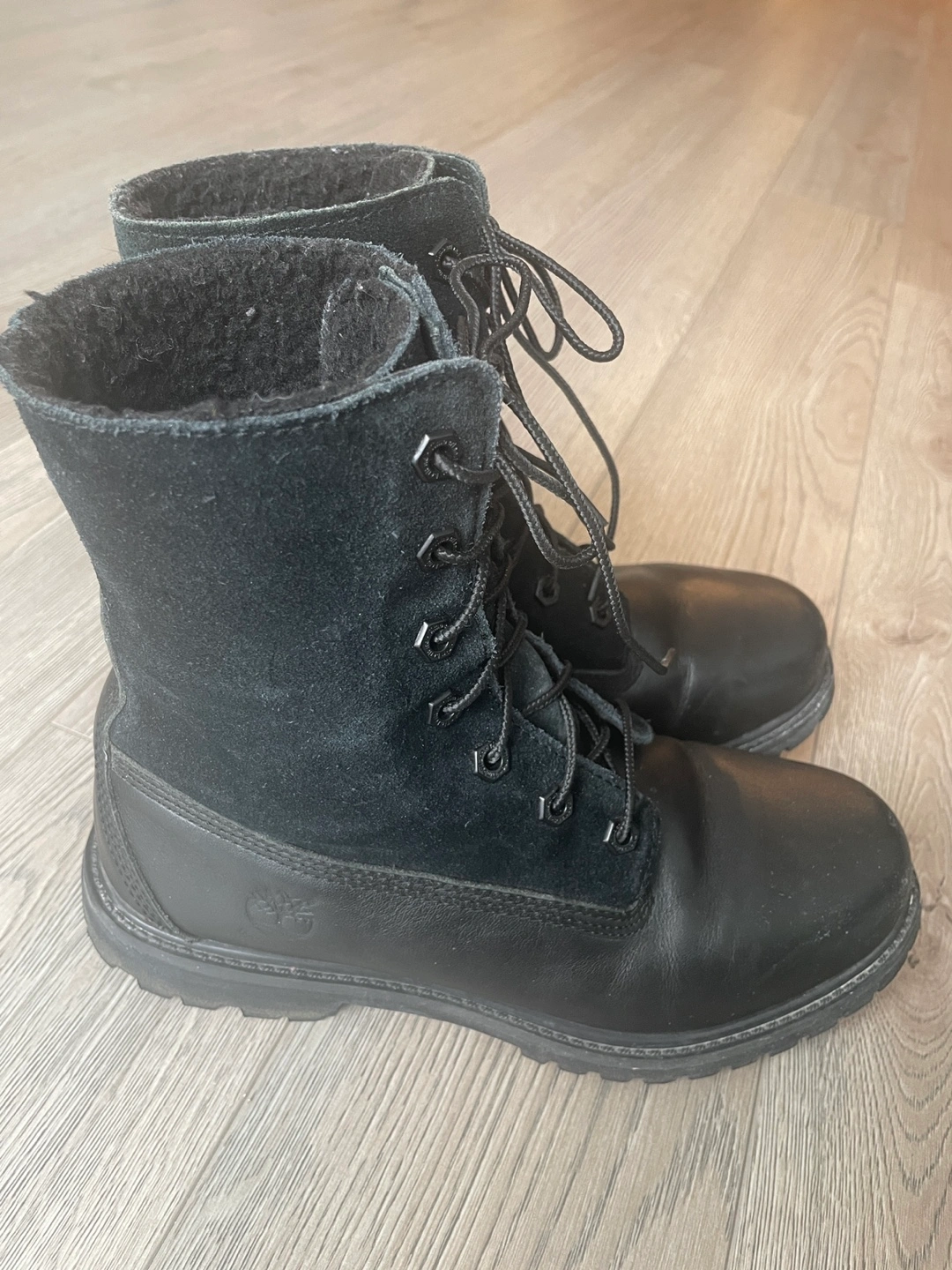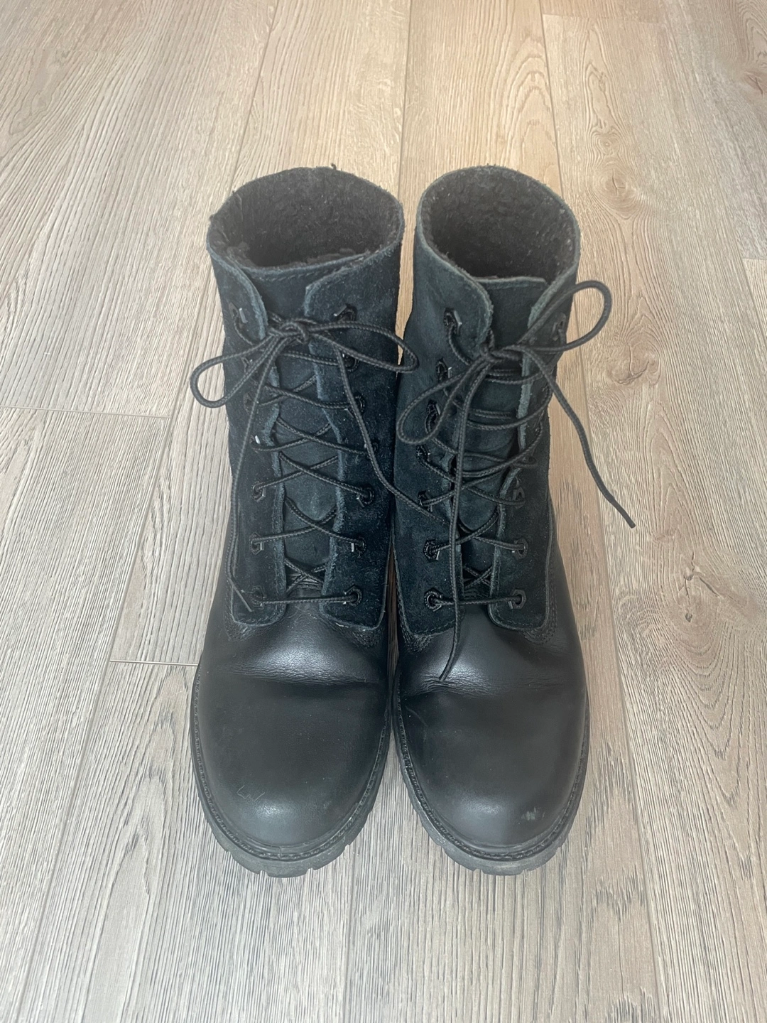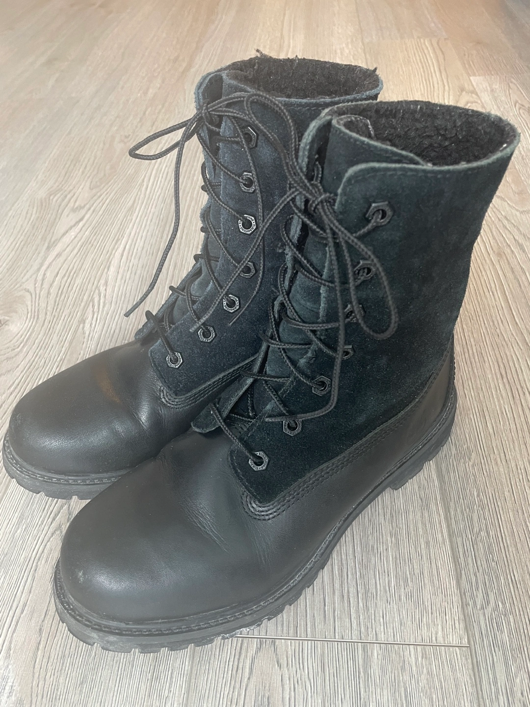 Beautiful pair of Timberland Earthkeepers black leather lace-up boots. Suede back. Women’s Size US 7 M / UK 5 / EU 38.