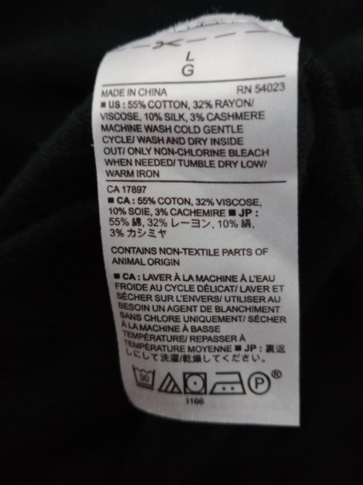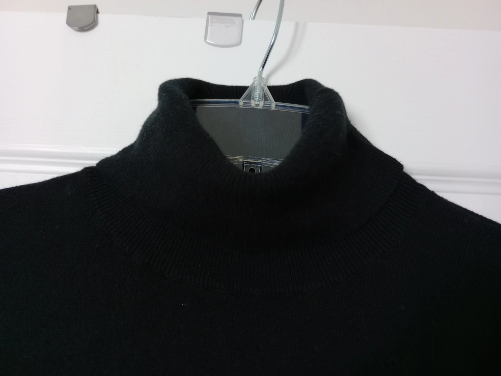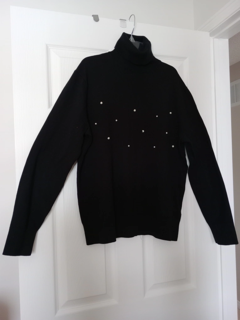 106Women's size large black turtleneck sweater. Premium luxe yarn. Made in China. Machine wash cold gentle cycle.