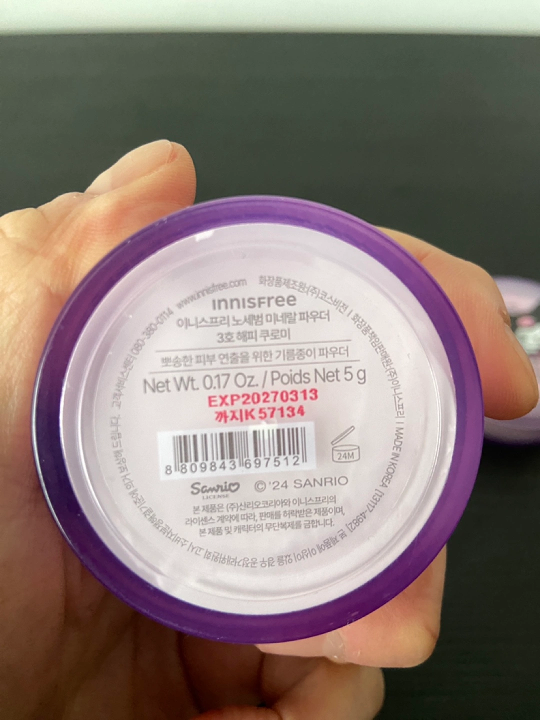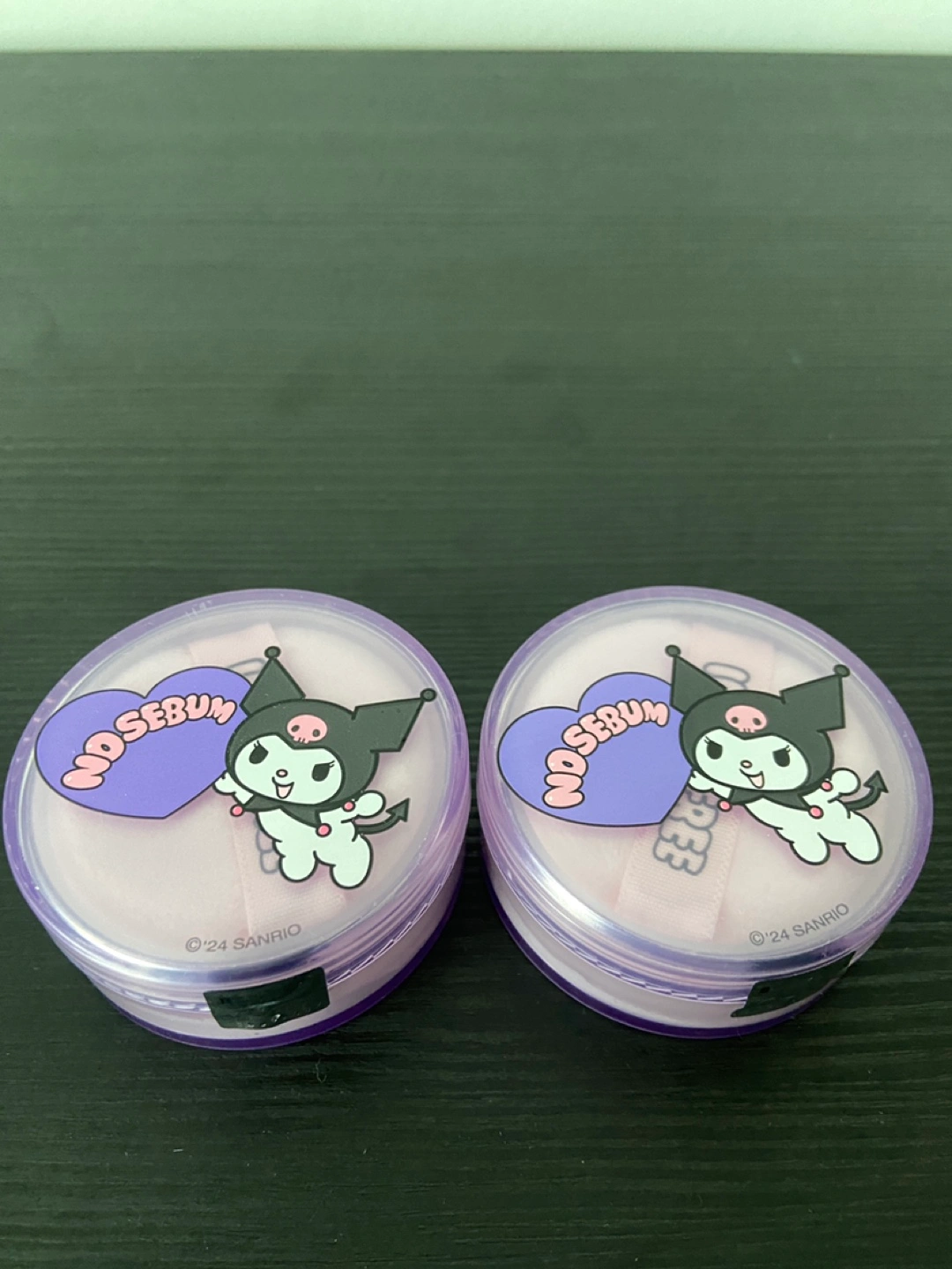Two mini No Sebum powder. Purple translucent containers. Kuromi collab. Lightweight and portable. New. Never been opened. Sealed as shown in tje pictures. 10 each