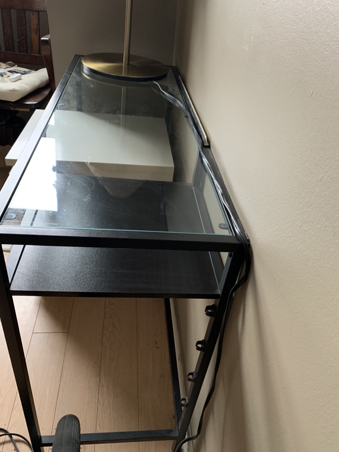 IKEA Glass Top Desk with Black Metal Frame