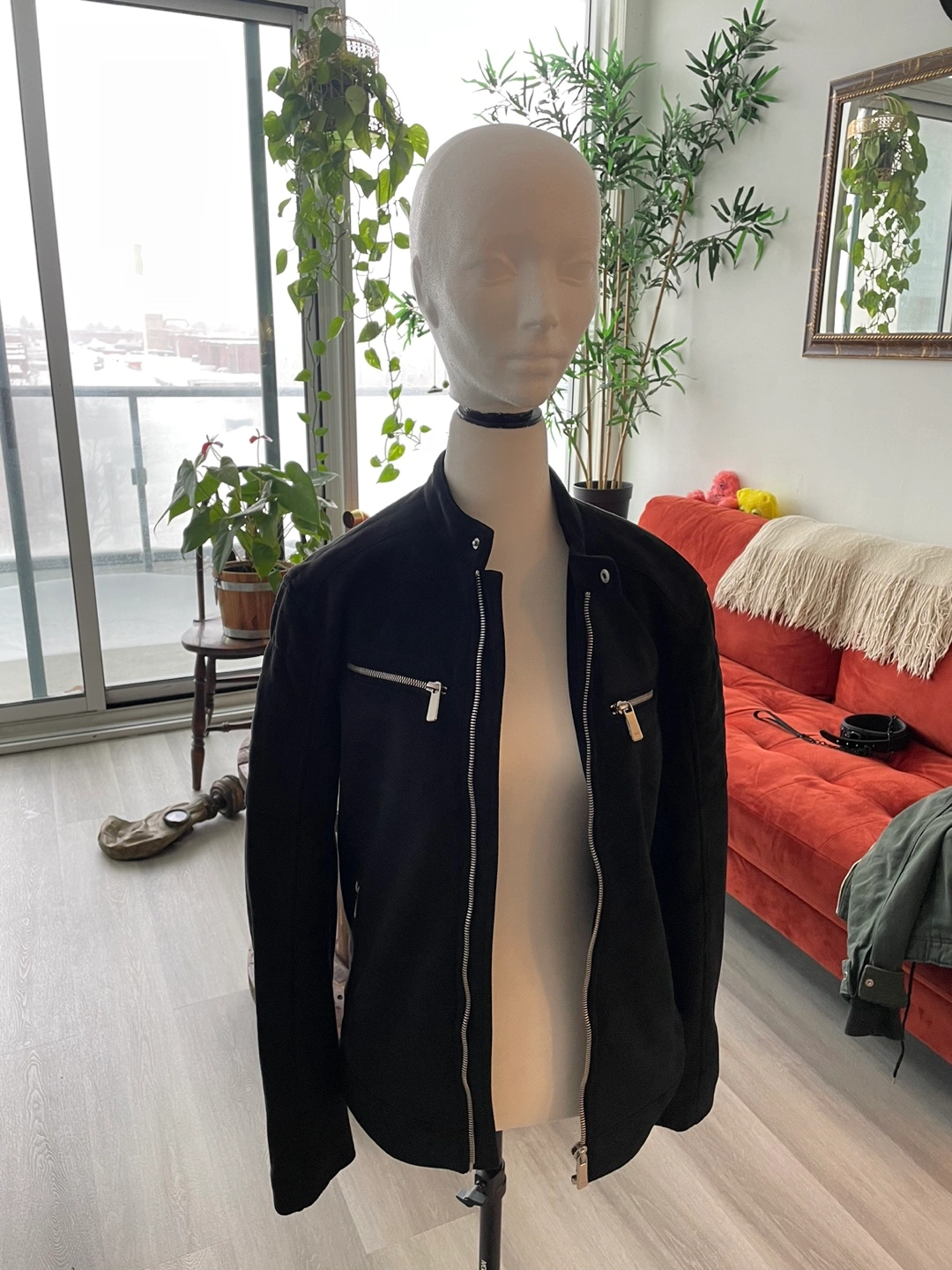 Black moto jacket. Size small. Zipper closure. Long sleeves. Excellent condition.