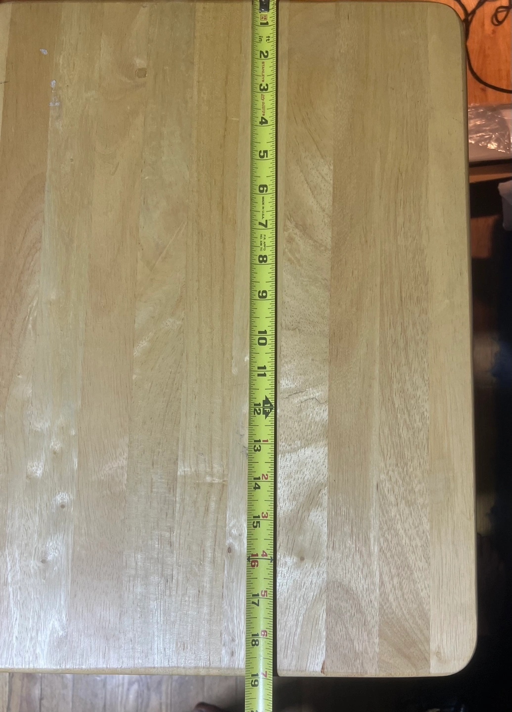 Collapsible wooden table that folds for easy storage. Light wood finish, please see photos. Small and portable, measures approximately 19”L x 14"W x 26"H.