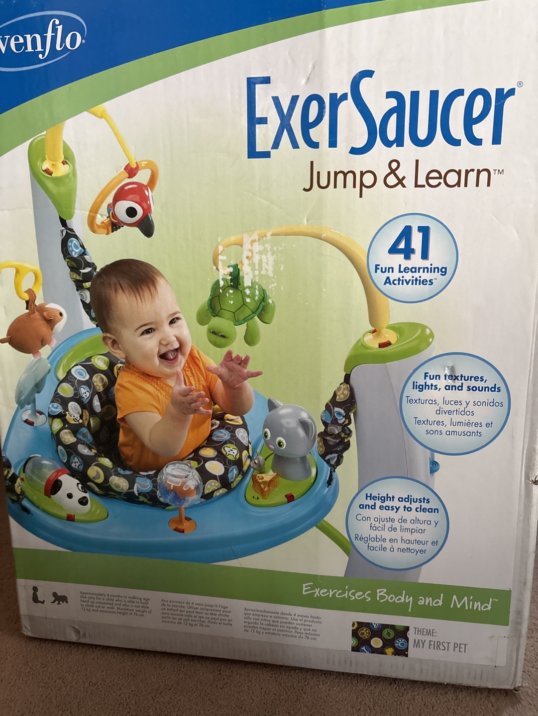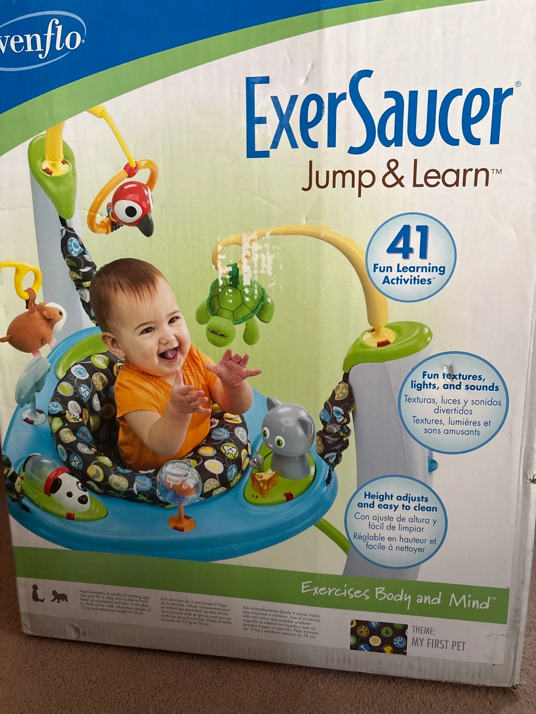 Baby Exersaucer. Features 41 fun learning activities. Height adjusts and is easy to clean. My First Pet theme.