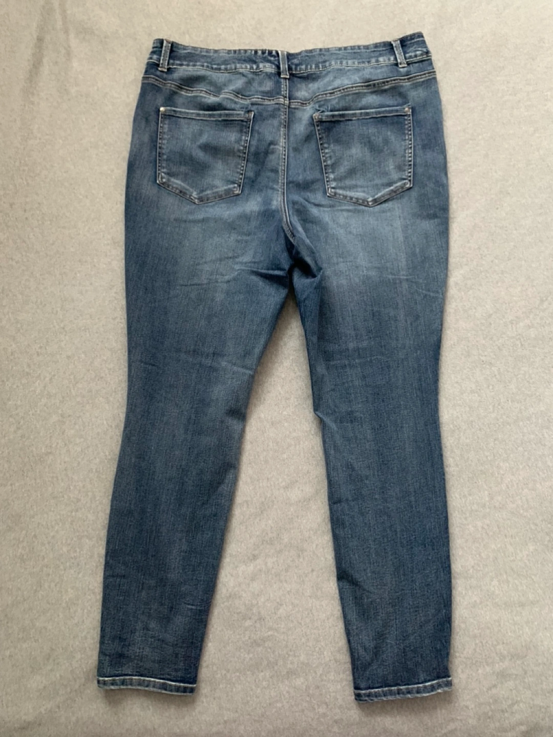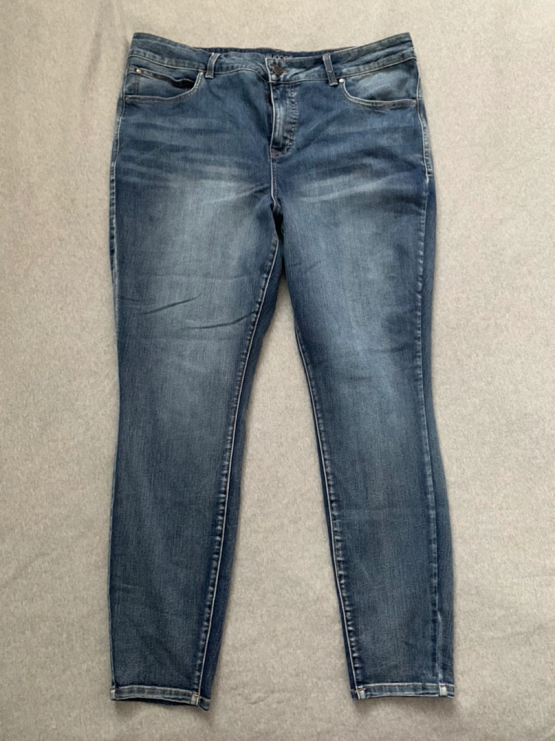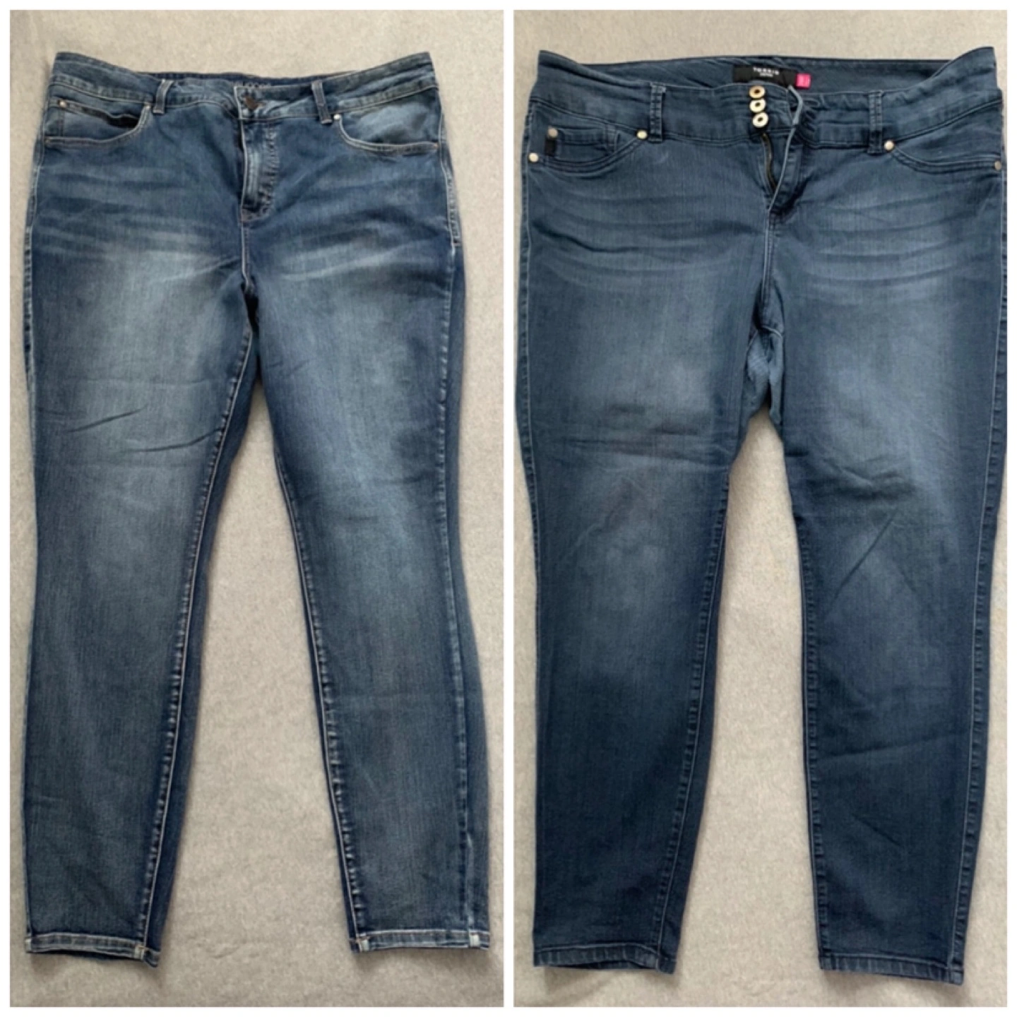 $7 — Maurices Everflex High-Rise Jeans - Women’s Size 20W Women's size 20W Maurices Everflex high-rise jeans. Dark wash denim. Excellent stretch. $3 — Torrid Denim Jeans Size 20R Women's dark wash denim jeans. Size 20R. Three button closure. 97% rayon, 2% polyester, 1% spandex. Note: there is very slight ware beginning to show on inner thigh. Price marked accordingly.