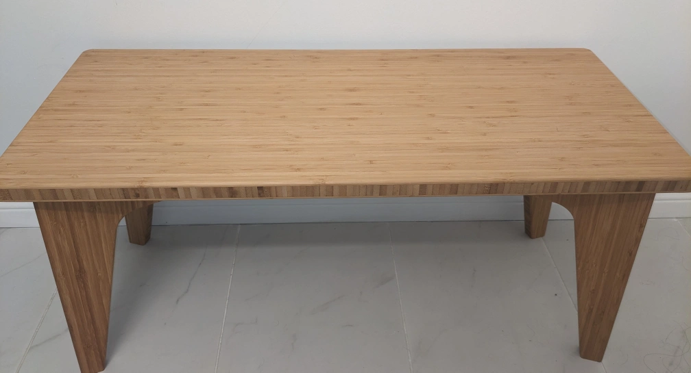86Buy Canadian! This sturdy, multi-functional table is handmade and custom-made (start to finish) in British Columbia by a company called Reforest Design. It's a Japanese and Scandinavian-inspired table that's perfect for use as a console table, side table, or a 'low to the floor' desk. That's the purpose for which I originally purchased this - to ease the low back pressure from sitting in chairs for too long. This table is completely non-toxic. It's made using sustainable 100% bamboo frames that are FSC, CE, CARB, and ISO certified. It is finished using a vegetable-based natural oil. It currently retails for $860 plus tax, which is what I paid for it when I purchased it a couple of years ago. It's in almost-new condition, with the only signs of use being a few small / barely visible pen marks on the top surface. This makes my current listing price a great bargain. I'm only selling this because I've recently moved and no longer have the space for it. The dimensions are 32" wide x 14" deep x 15" high.