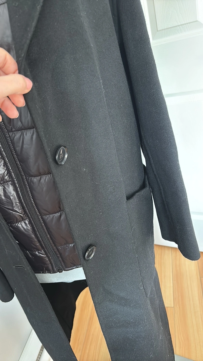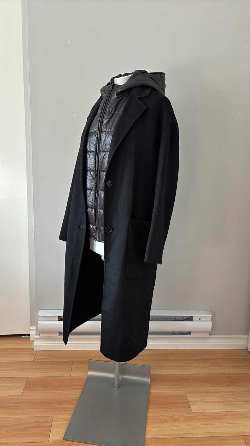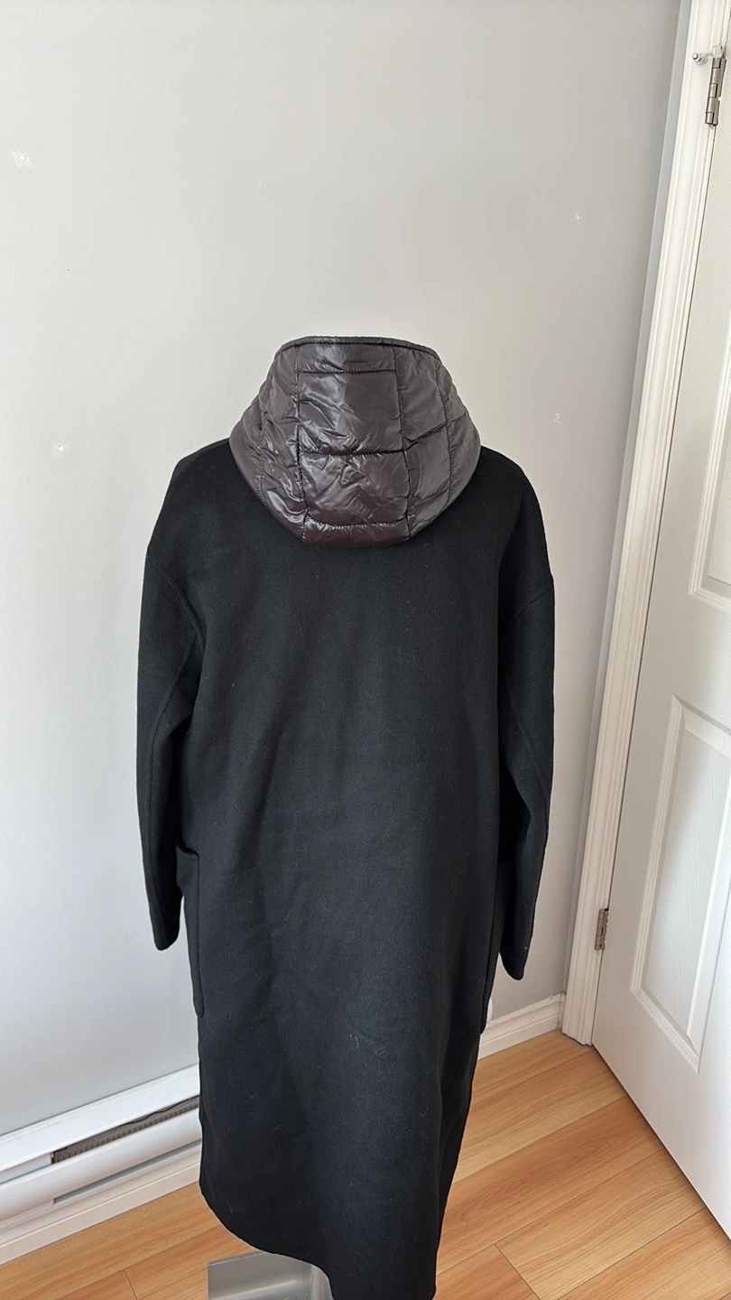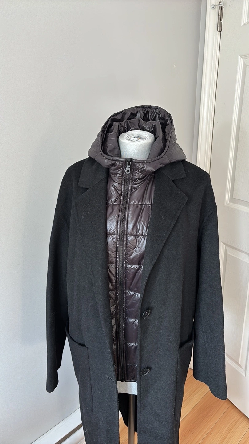 Zara Black Wool Blend Coat with Detachable Hooded Puffer Vest