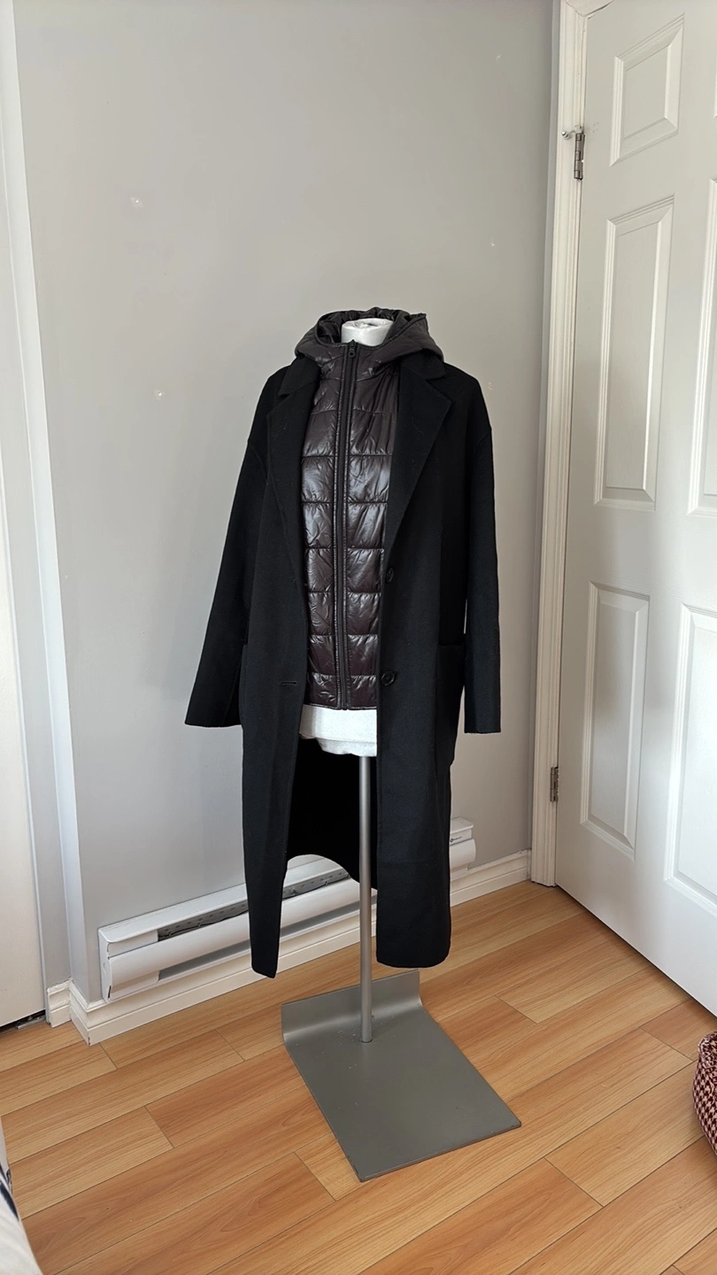 Zara black will blend, hand made coat. 2 in 1. Features a detachable hooded puffer vest. Oversized fit. Can be worn together or separate.