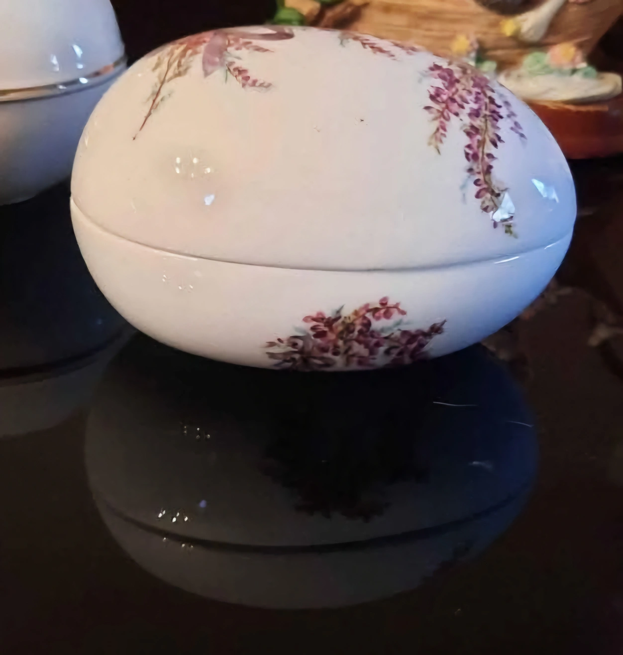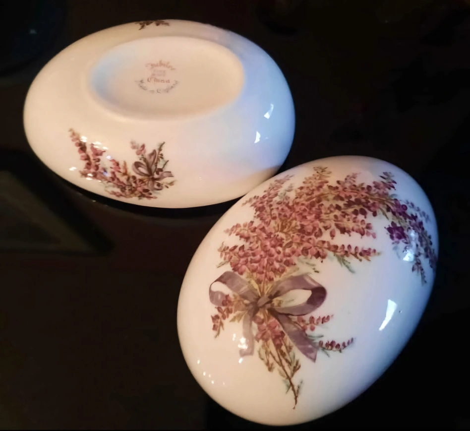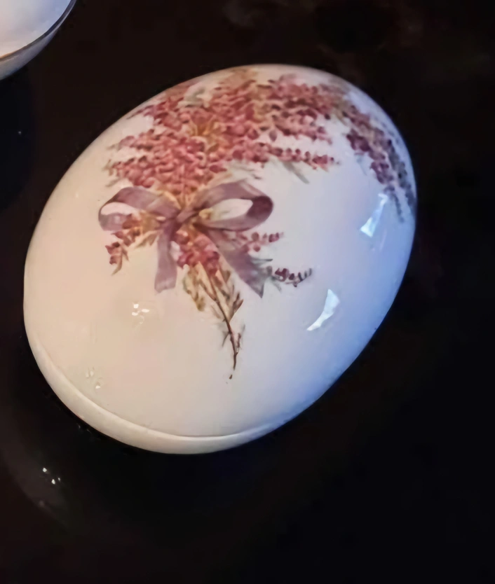 Vintage Porcelain Egg Trinket Box with Floral Design