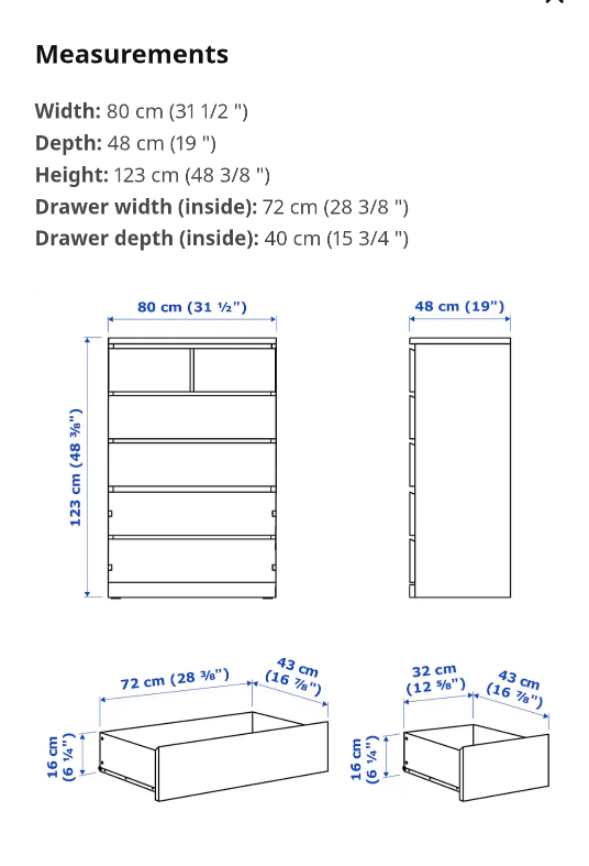 1 / 31 / 3Buy & SellIKEA MALM 6-drawer Chest WhiteIKEA MALM 6-drawer Chest White$200White 6-drawer Malm dresser, like new condition. ConditionLike newDimensions80CM X 48CM X 123CMWHERE TO MEETCity PlaceView MapSELLERAmyCityPlace694 reviews9 chats·4 favorites·174 viewsSEND CHAT TO SELLERHi Amy! I’m interested in your listing.Hi Amy! I’m interested in your listing.Get the Karrot app to chatSign In to chat