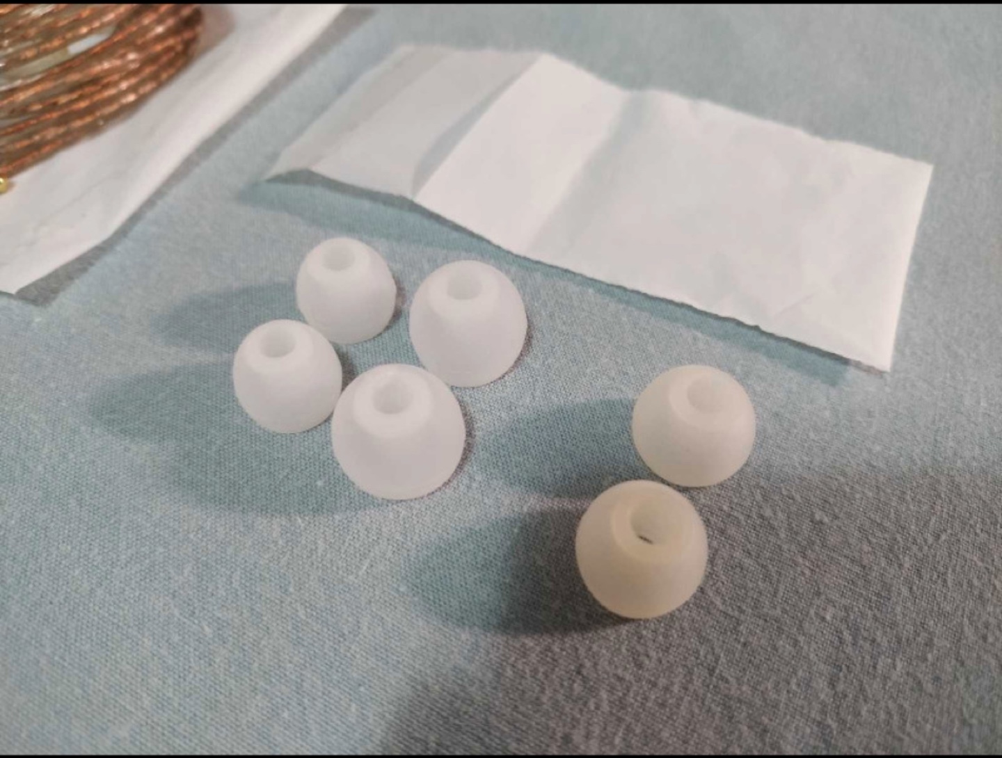 with stock ear tips (medium sized has been cleaned with alcohol)