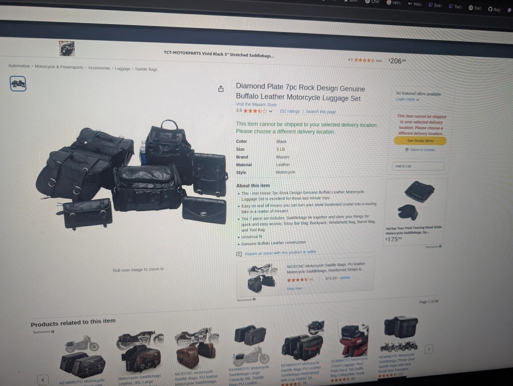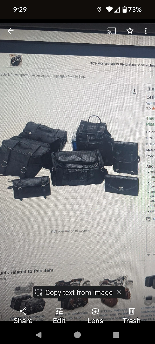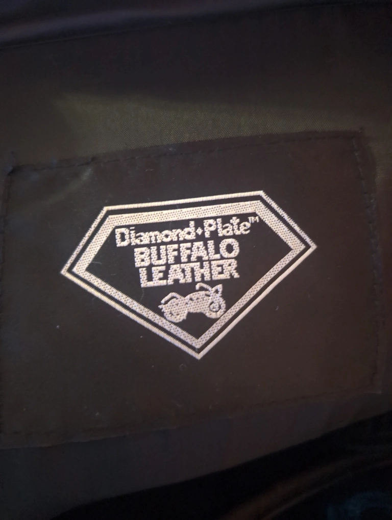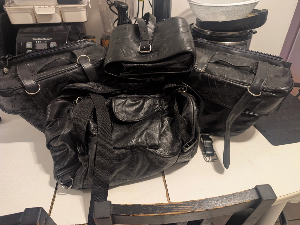 Genuine leather motorcycle saddlebag set. Diamond Plate Buffalo Leather. Includes three bags and a small pouch. Easy on and off system. Universal fit.used once