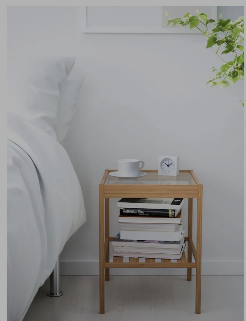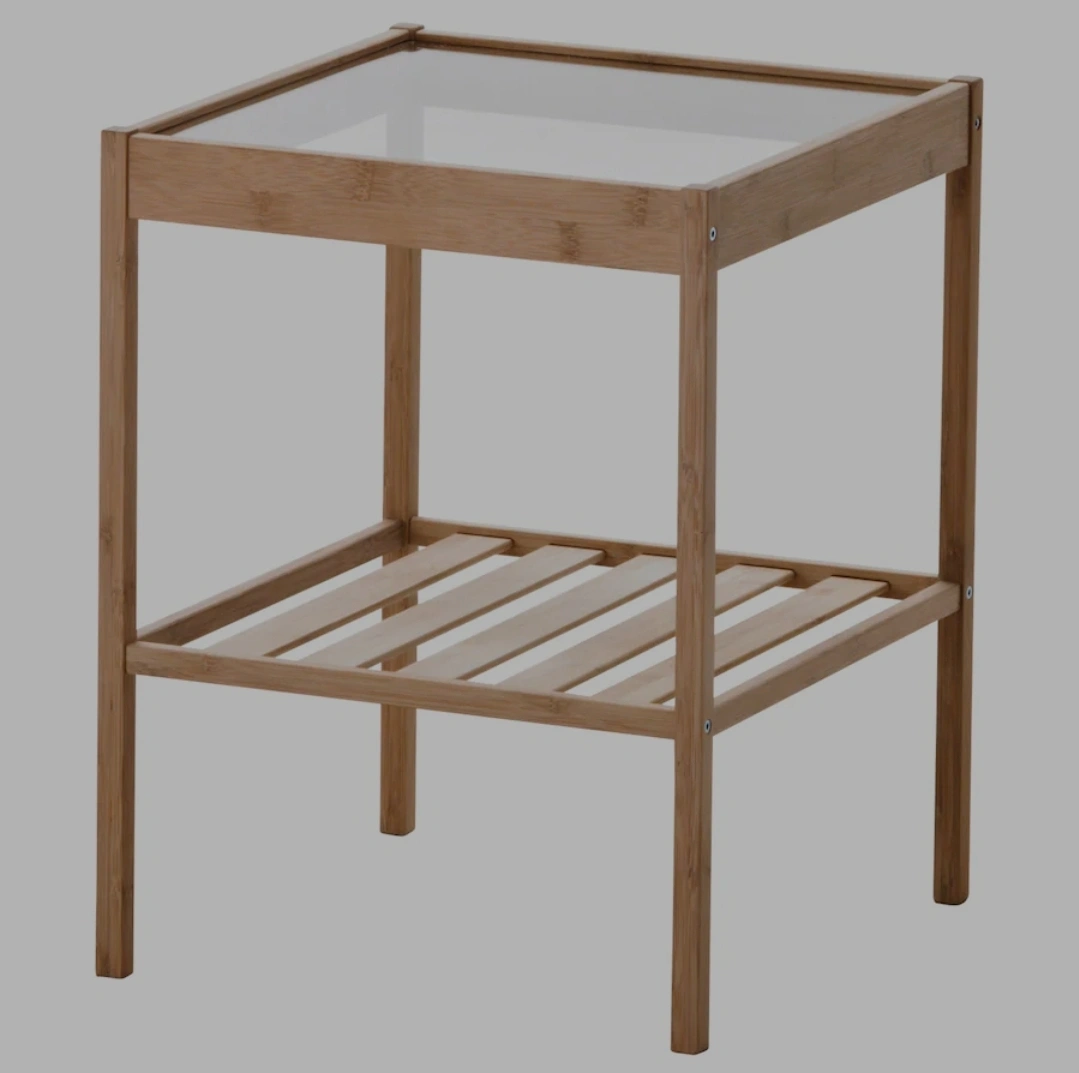 IKEA NESNA Nightstand/Side Table | 36x35x45 cm | Bamboo, Glass