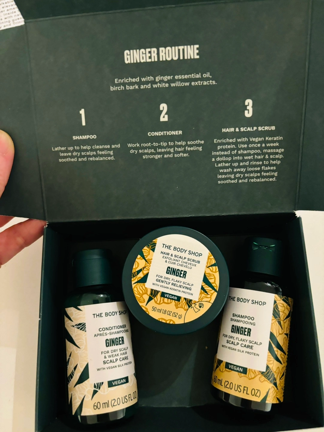 83Soothe that dry scalp. New, unopened kit. Includes shampoo, conditioner, and hair and scalp scrub. Vegan and enriched with ginger essential oil, birch bark and white willow extracts. 60ml shampoo 60ml conditioner 50ml hair and ancai scrub Van ( Fraser & king Edward ) or Richmond Landsdown or Richmond Center