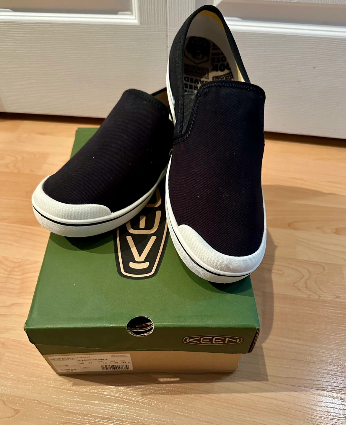 Men's Keen Eldon black canvas slip-on shoes. Size US 11. Brand new in box. Fit is slightly large (too big for me & missed return window).