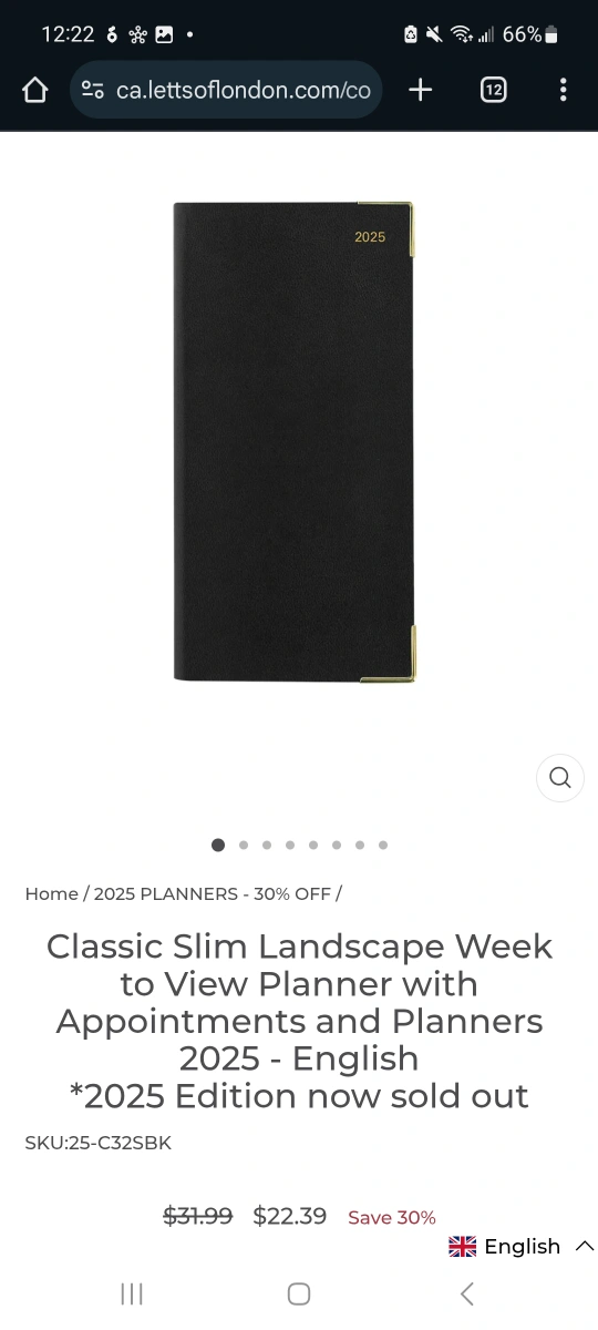 2025 Letts of London weekly planner. Bonded leather cover. Made in Great Britain. Slim landscape format. Still sells for $20+ https://ca.lettsoflondon.com/collections/planners/products/classic-slim-week-to-view-planner-with-monthly-planners-2025-english