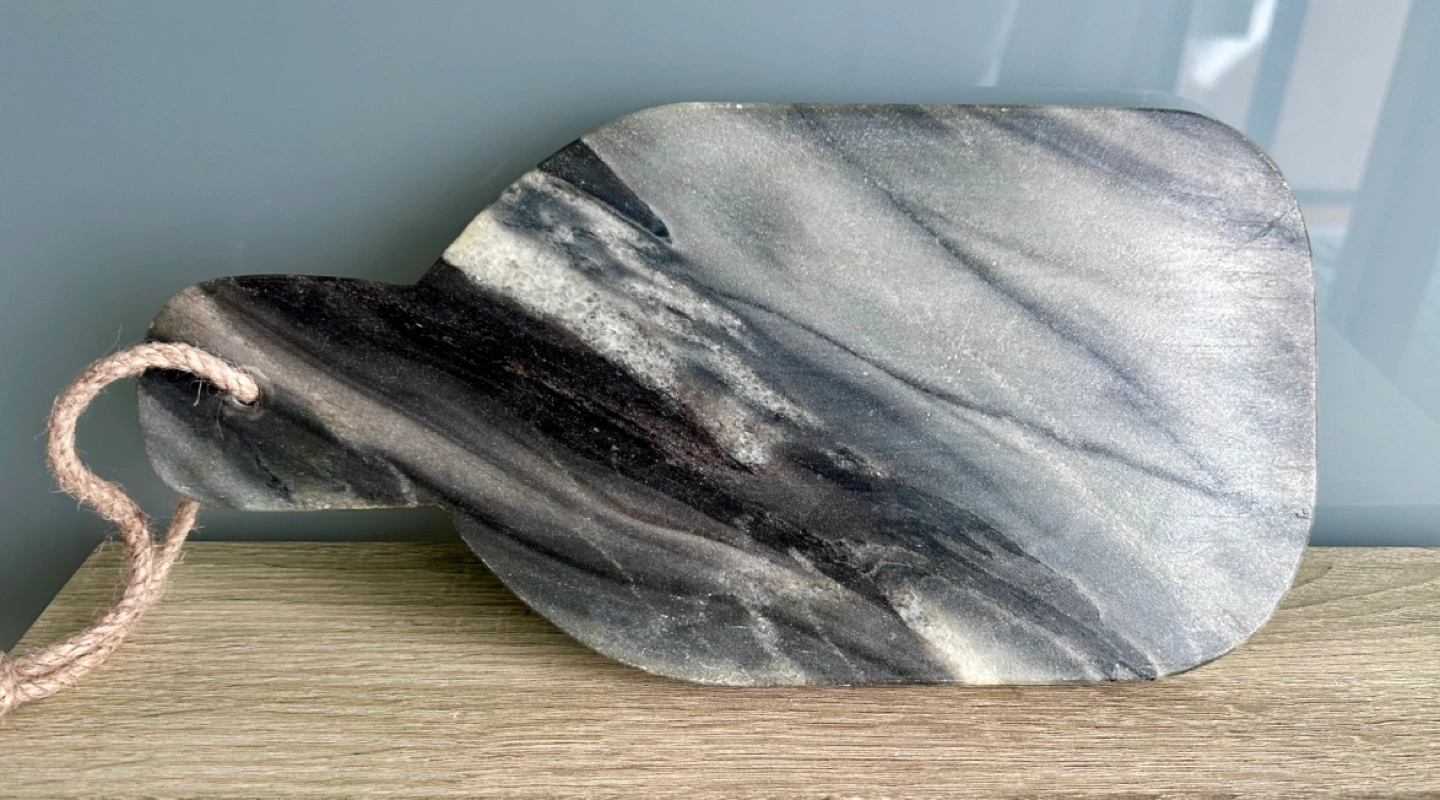 This stunning marble board is perfect for serving food, a cheese platter, candle holder, decor accent and many more uses.
