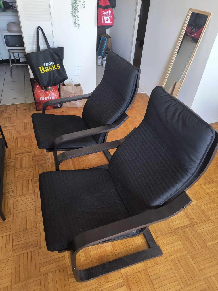Ikea POANG chairs, they are great but I am moving and won't have room for them. Barely used, they are basically just like new.
