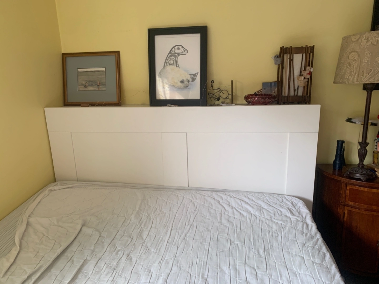 IKEA White Queen Headboard with Built-in Shelves