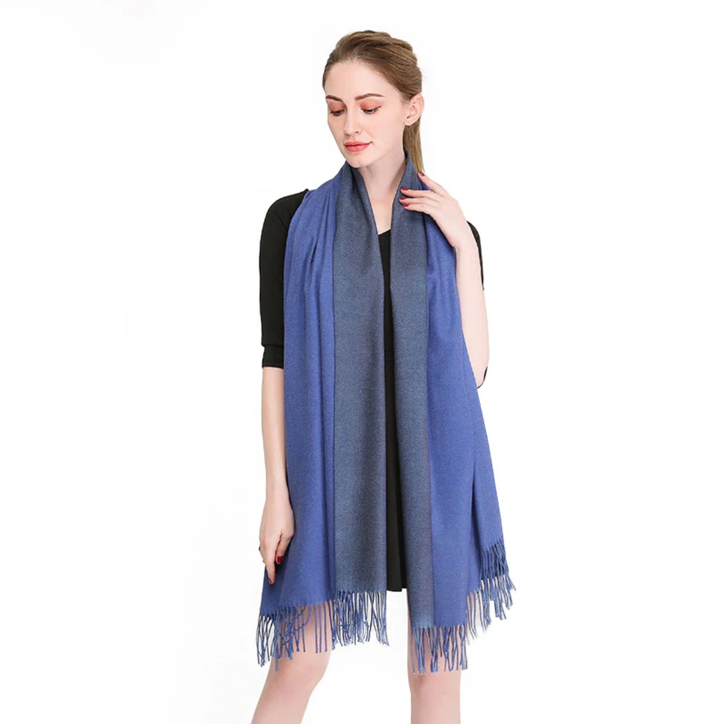 Two-Tone Dark Grey/Blue Warm Scarf - with Tassels