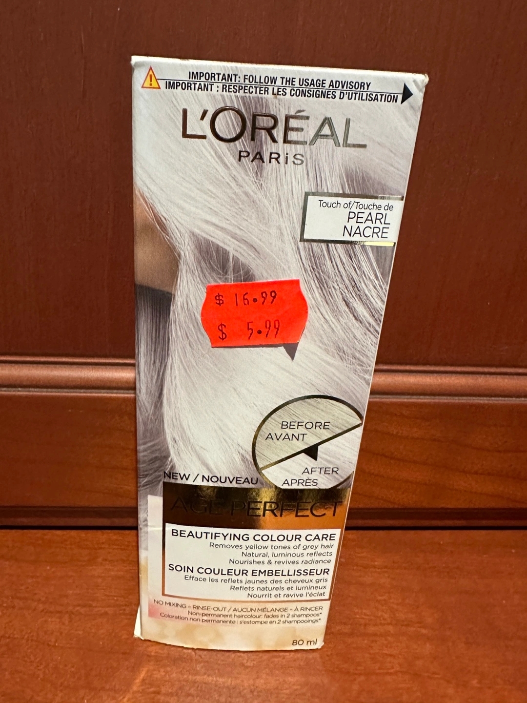 80ml tube of L'Oréal Paris Age Perfect Beautifying Colour Care in Pearl. Removes yellow tones of grey hair. Nourishes and revives radiance. Lasts 2 shampoos. Reusable.