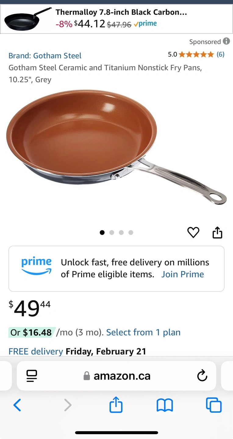 10.25 inch fry pan. Non-stick titanium ceramic coating. Oven safe up to 500°F. Dishwasher safe. Brand new and never been used. From smoke free and pets free home.