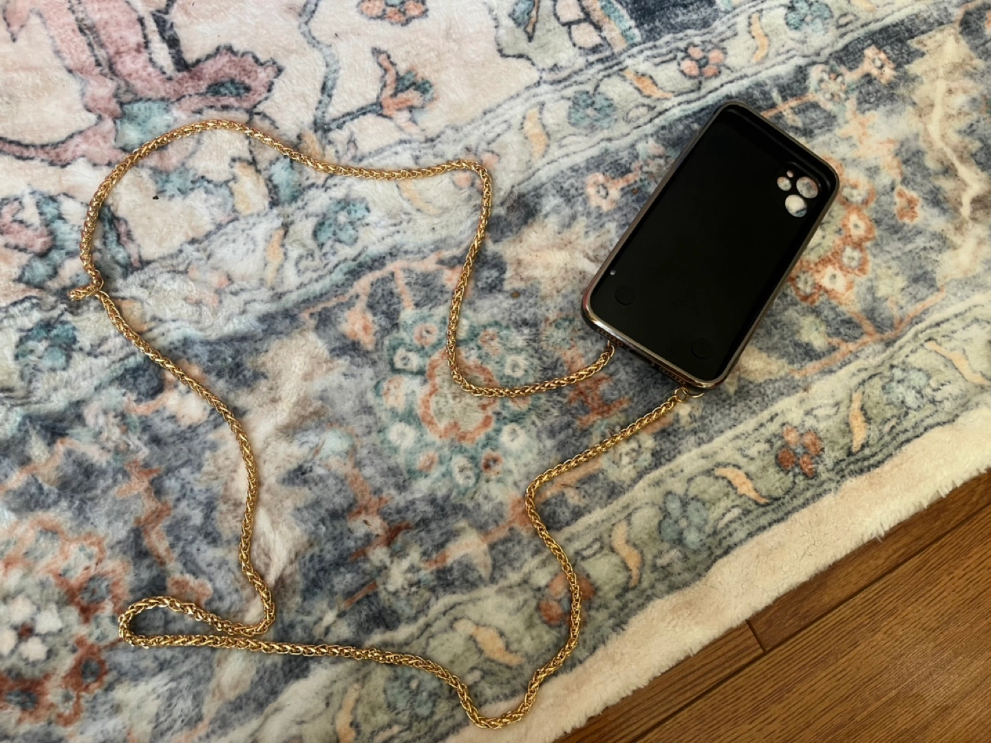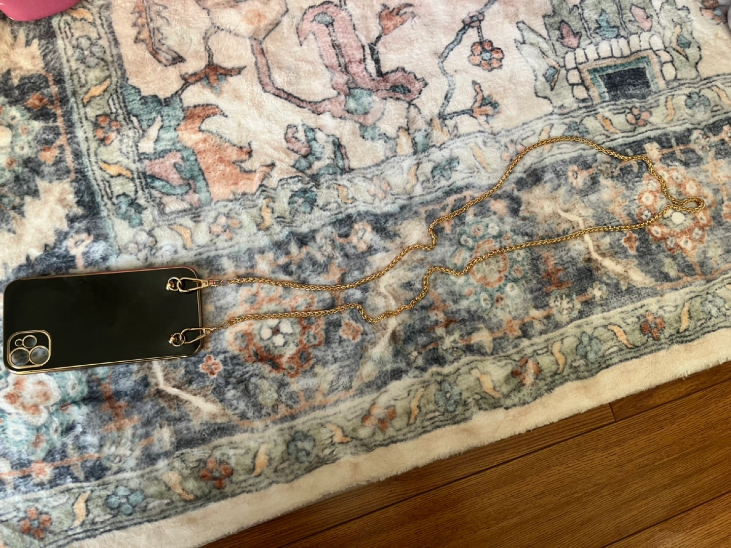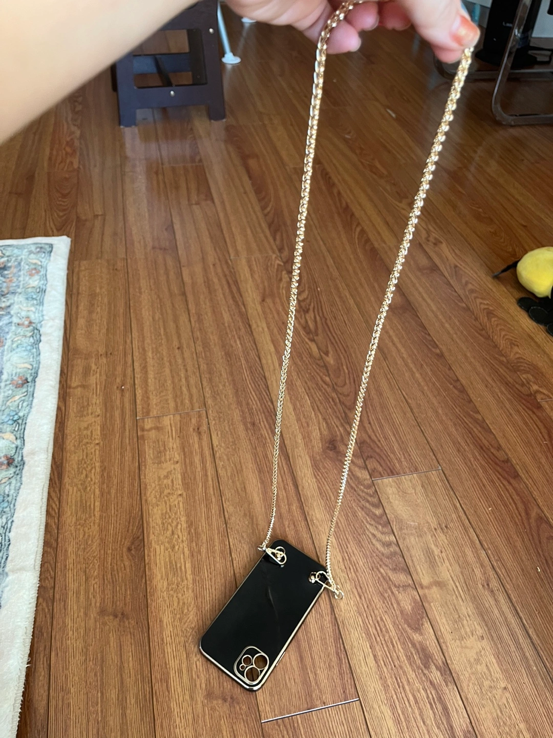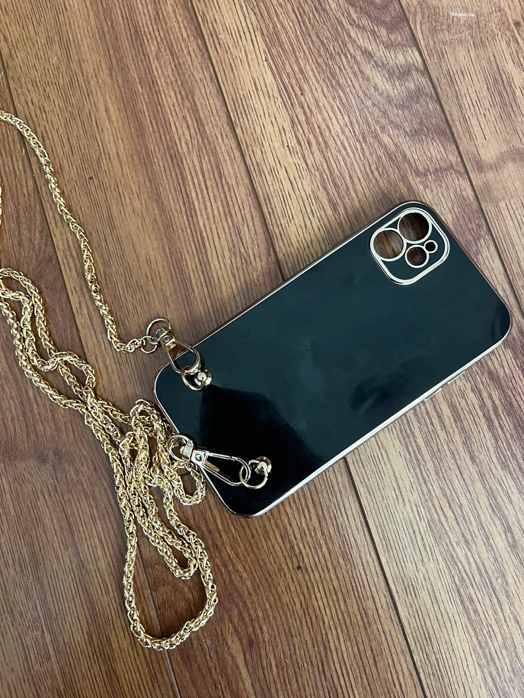530Brand new iPhone 11 case with gold chain to wear as bag. Great for going to house parties or places where you don’t want to wear a bag and just carry your phone on you at all times. Only fits iPhone 11.