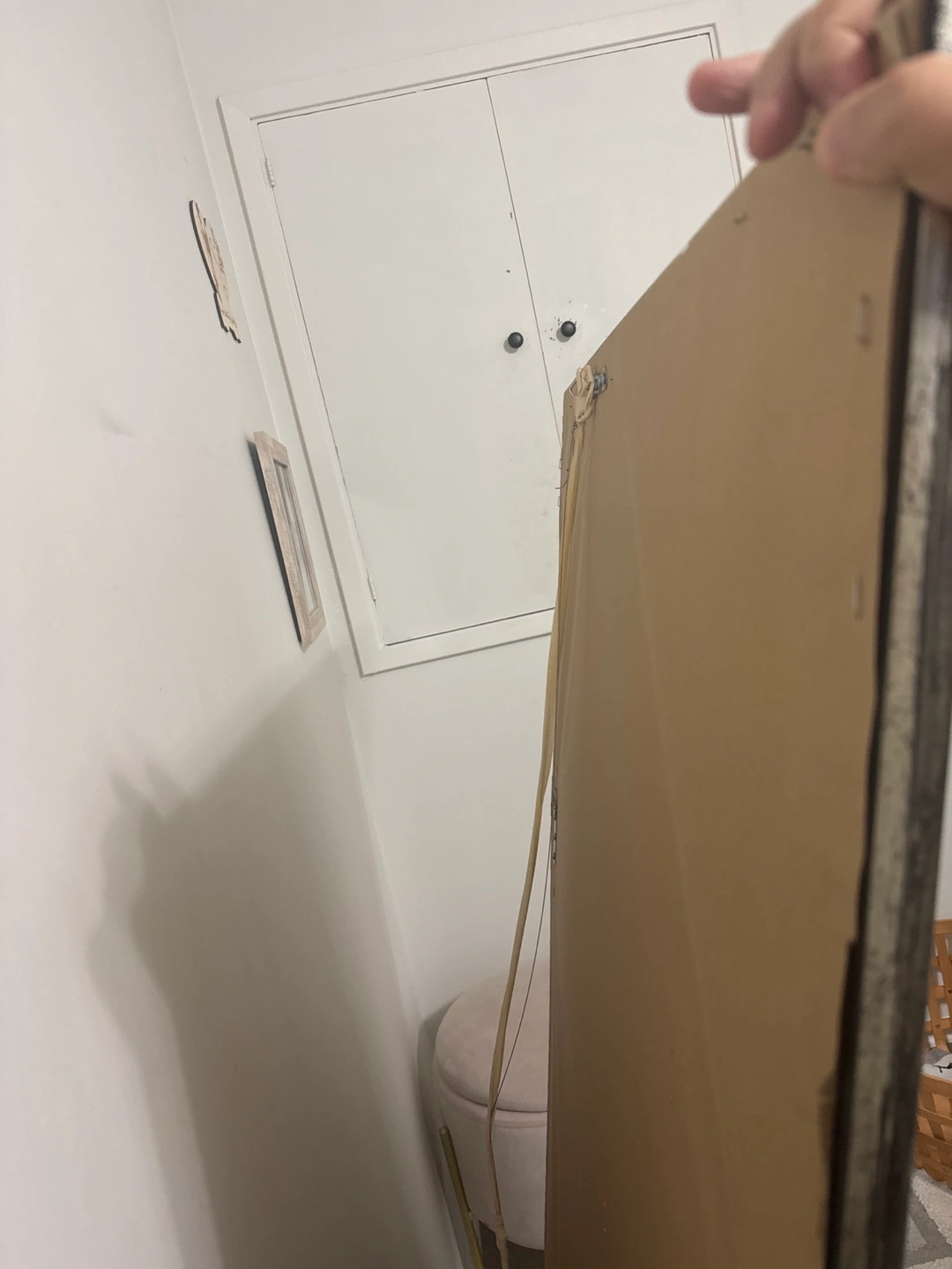 Beautiful large mirror. Ornate silver frame. Great for a bedroom or entryway. Measures approximately 60 inches tall by 30 inches wide.